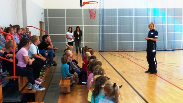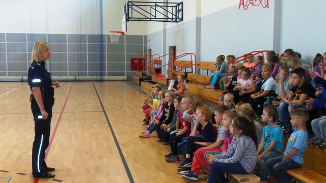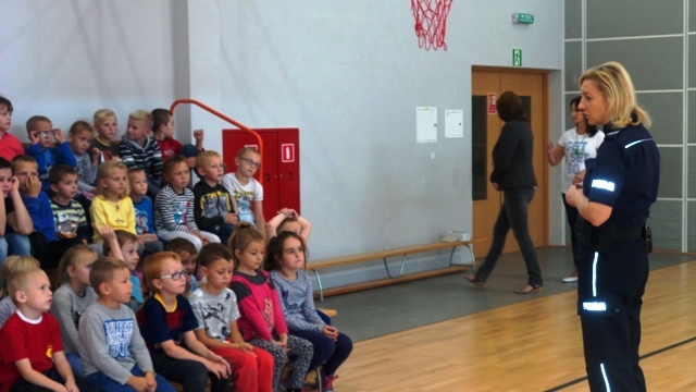 18 września naszą szkołę odwiedziła p. sierż. sztab. Estera Bartol z Komisariatu Policji w Trzciance. Spotkała się z uczniami klas I-III. Pani policjant przedstawiła dzieciom podstawowe zasady bezpieczeństwa w różnych sytuacjach. Mówiła o poruszaniu się po drodze, o zachowaniu podczas kontaktu z obcymi osobami, o bezpieczeństwie zarówno w trakcie pobytu w domu, a także podczas zabawy.Spotkanie przebiegło w miłej i przyjaznej atmosferze. Dzieci zadawały pytania, na które pani policjant chętnie odpowiadała. Aby zwiększyć bezpieczeństwo podczas drogi do szkoły, najmłodsi uczniowie otrzymali w prezencie kolorowe odblaski.