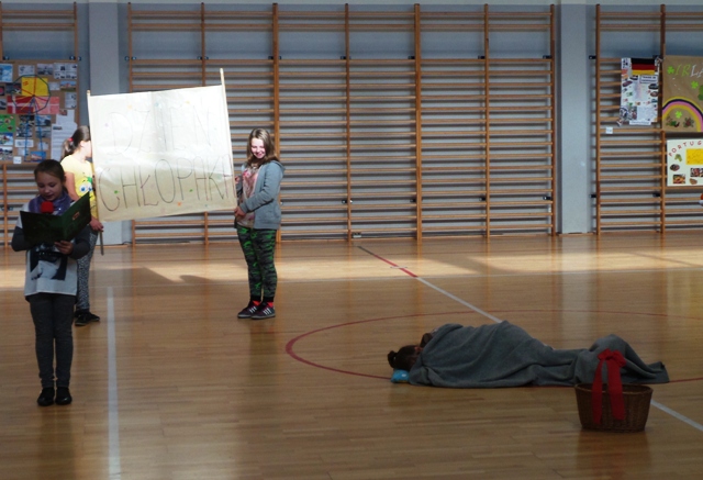 Tego dnia dziewczęta z klasy IV i V SP oraz klasy I i III Gimnazjum pod opieką pani Beaty Pać oraz Anny Husak rozpoczęły przygotowania do apelu. Wszystko odbyło się w sali sportowej podczas, gdy niepodejrzewający niczego chłopcy byli na lekcjach. Kiedy przygotowania dobiegły końca, rozpoczął się krótki występ artystyczny. Panowie mieli okazję dowiedzieć się jacy są w oczach kobiet. Dziewczęta zaprezentowały różne typy mężczyzn zaczynając od marzyciela , którego poznamy po wzroku wskazującym na obcowanie z inną planetą, lalusia -zadbanego, pachnącego i ubranego w najmodniejsze ciuchy, który nie wstydzi się tego, że chodzi do kosmetyczki, osiłka zaczynającego dzień od gimnastyki i napinania mięśni przed lustrem, skończywszy na śpiochu- wiecznie zmęczonym człowieku i dzikusie, którego najlepiej unikać. Podsumowaniem tego było stwierdzenie, że niektórzy dotychczas mili i atrakcyjni mężczyźni stają się dzikusami po kilku latach związku, często