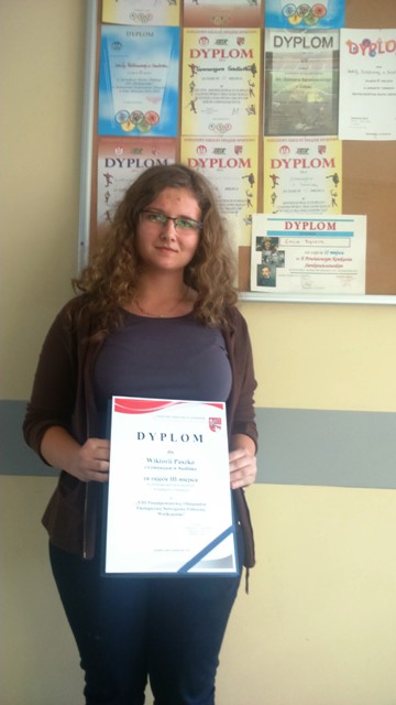 6 października 2015r. w Starostwie Powiatowym w Czarnkowie uczniowie naszego gimnazjum tj. Katarzyna Hołowko, Wiktoria Paszko i Jakub Paszko wzięli udział w VIII Ponadpowiatowej Olimpiadzie Ekologicznej Subregionu Północnej Wielkopolski. Wśród ośmiu przedstawicieli naszego powiatu, którzy zakwalifikowali się do ścisłego finału olimpiady znalazły się nasze uczennice: