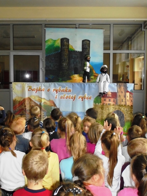 22 października naszą szkołę odwiedził teatrzyk kukiełkowy z przedstawieniem "O rybaku i złotej rybce". Dzieci z klas I-III obejrzały bajkę, opowiedzianą przez marynarza, której bohaterami byli dobroduszny rybak, jego złośliwa żona i złota rybka. To bajka z morałem i mądrością życiową. Uczniowie dowiedzieli się, że w życiu należy być pokornym, pracowitym i szanować innych. Należy umieć zadowolić się tym, co mamy, nie żądając zbyt wiele, bo można wszystko stracić. A spełnienie marzeń nie zawsze prowadzi do szczęścia. Mieliśmy okazję podziwiać prawdziwe, piękne kukiełki i posłuchać muzyki.