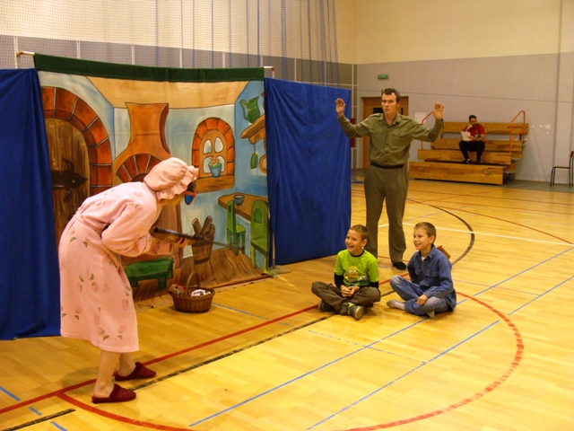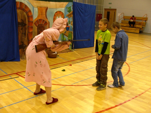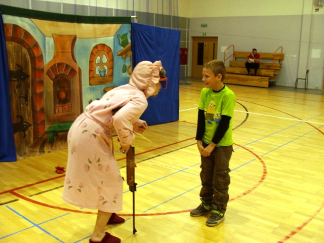 Żywiołowe przedstawienie wywołało spontaniczne reakcji, salwy śmiechu oraz chęć do udziału w przedstawieniu u wszystkich dzieci. Bohaterowie bajki: Czerwony Kapturek, wilk, leśniczy oraz babcia zostali przedstawieni w nietypowy sposób i chociaż to w oryginale bajka pełna dramatów, nic takiego tutaj nie miało miejsca. Kapturek uciekł niezdarnemu wilkowi, a babcia rozprawiła się z tym zbójem za pomocą dubeltówki.
