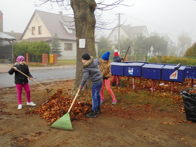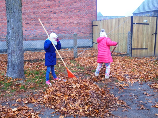 Mimo kapryśnej pogody, w pierwszych dniach listopada, uczniowie klasy III pospieszyli na pomoc kasztanowcom. W miarę swoich możliwości usunęli znaczną część liści. Mamy nadzieję, że w ten sposób choć trochę pomogliśmy naturze.