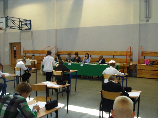 Uczniowie rozwiązali w ciągu 60 minut test i zadania otwarte, które sprawdziła komisja w składzie: przewodnicząca – Agnieszka Warnkowska, członkowie: p. Elżbieta Kosowicz – Bartol, p. Jadwiga Wolniak, p. Janina Góźdź, p. Elżbieta Stankiewicz, p. Ewa Koniuszy, p. Bożena Sobczak.