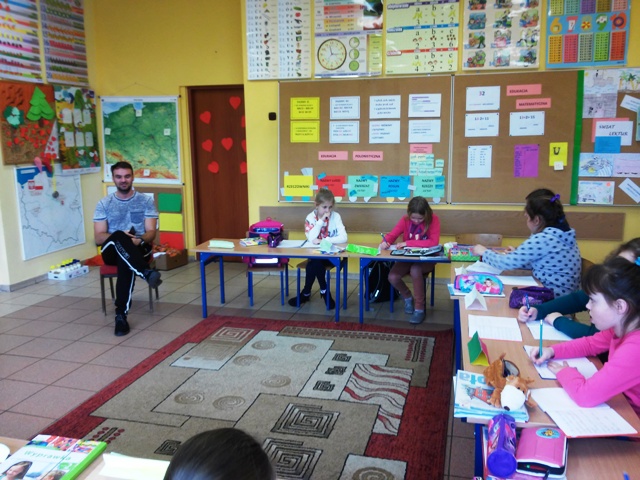 Jednym z zadań do wykonania w tym programie jest spotkanie z osobowością sportowa z okolicy. Na nasza lekcje udało nam się zaprosić p. Łukasza Mleczaka- trenera piłki nożnej i nauczyciela wychowania fizycznego w naszej szkole. Opowiedział nam o działaniach sportowych i o najlepszych sportowcach w naszej szkole . Lekcja była niezwykle ciekawa i wyciągnęliśmy z niej wiele wniosków.