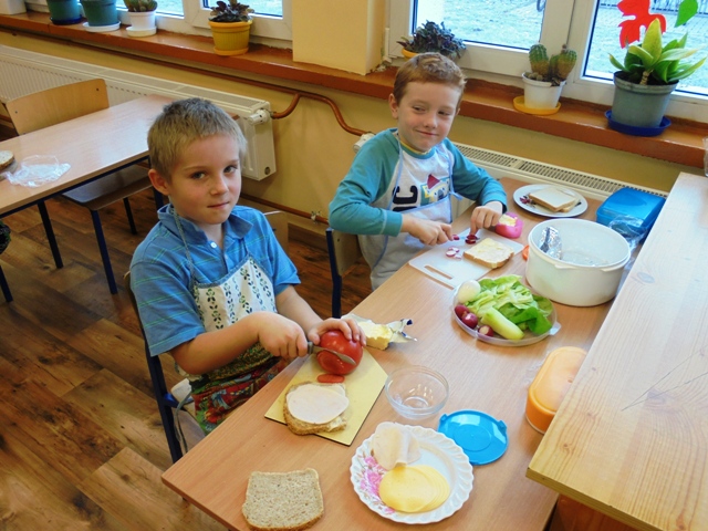 8 listopada klasa I uczestniczyła w programie "Śniadanie daje moc". Maluchy dowiedziały się, że śniadanie to najważniejszy posiłek dnia. Dzięki niemu dzieci mają energię do nauki i siłę do zabawy, szybciej zapamiętują, są bardziej odporne na choroby i radośniejsze. Dzieci same przygotowały zdrowe, kolorowe i pyszne śniadanie. Praca przyniosła wszystkim wiele radości. Hmm... a jak smakowały kolorowe, zdrowe kanapki!!! Mniam...