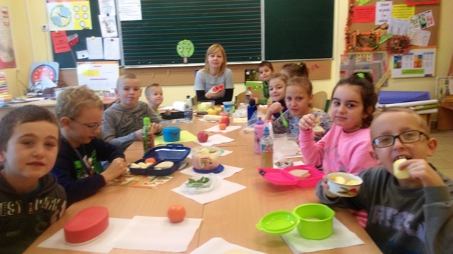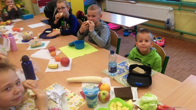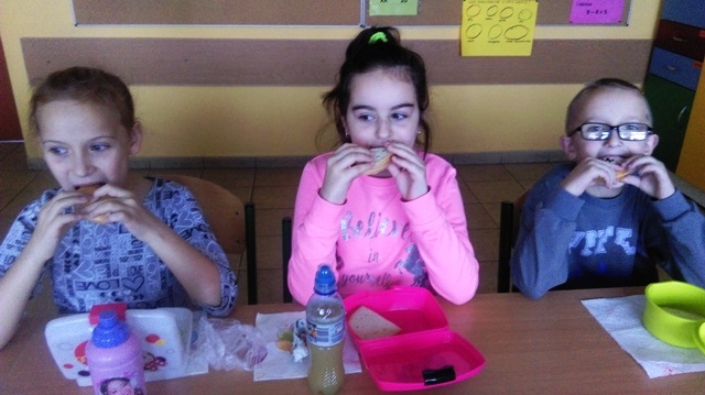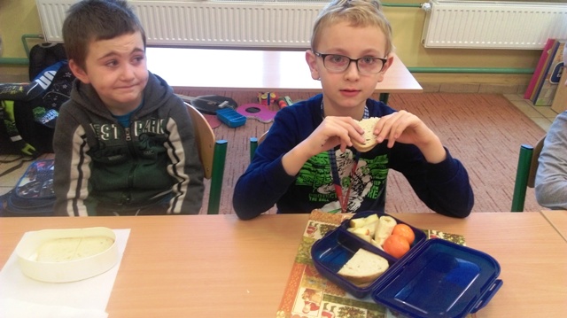 Uczniowie klasy IIIa mają moc, a wszystko dzięki śniadaniu, które zostało wstępnie przygotowane w domu przez rodziców, a dokończone i z apetytem zjedzone w szkole. W tym dniu tysiące szkół podstawowych w całej Polsce obchodziły śniadaniowe święto. Było bardzo smacznie i zdrowo :-)