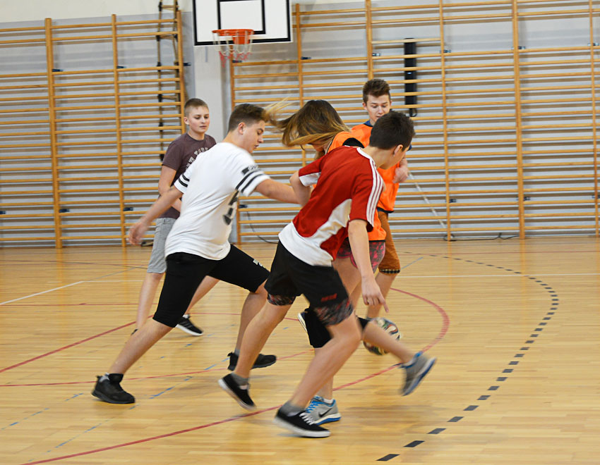 Reprezentanci klas gimnazjum walecznie bronili swojej pozycji w turnieju. Każdy bowiem chciał wygrać i stanąć na "podium". Ostatecznie zawody wygrała klasa III.
