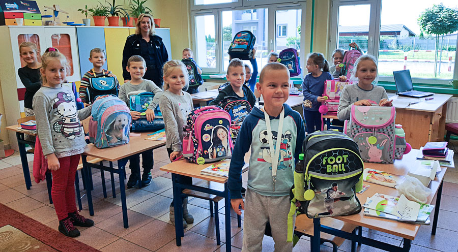 W poniedziałek, 11 września, odwiedziła naszą szkołę pani policjant, funkcjonariusz Komisariatu Policji w Trzciance - Estera Bartol. Spotkała się z najmłodszymi uczniami - pierwszoklasistani. Omówiła z dziećmi zasady bezpieczeństwa w drodze do szkoły. W prezencie każdy otrzymał odblask, który przyczepił do szkolnego plecaka. Dzięki temu będzie lepiej widoczny dla użytkowników drogi.