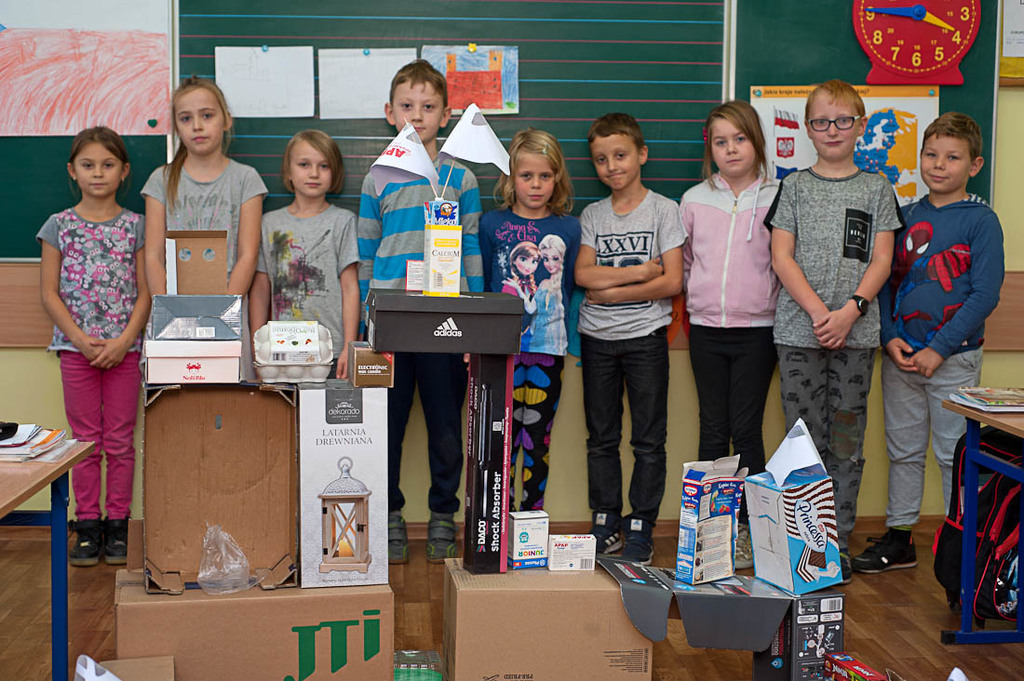 Dziś klasa III b szkoły podstawowej wykonała fantastyczną budowlę - z materiałów ekologicznych dzieci zbudowały zamek dla króla. Efekt pracy można podziwiać na zdjęciu.