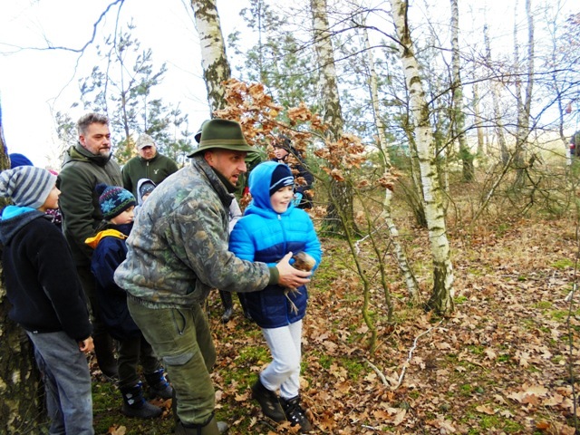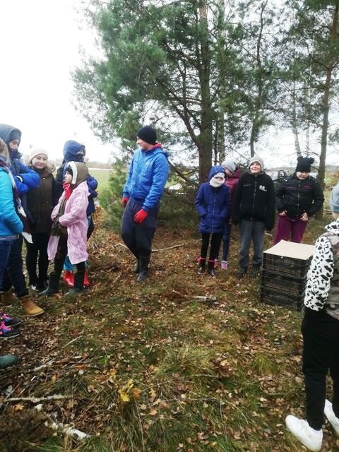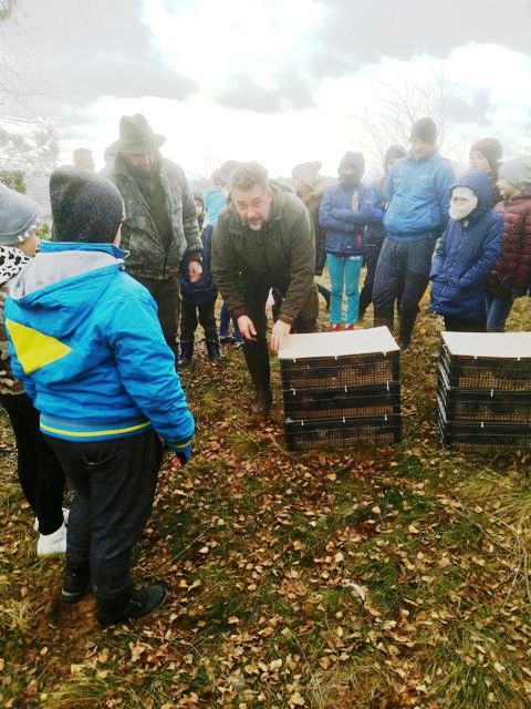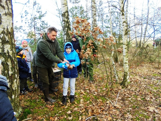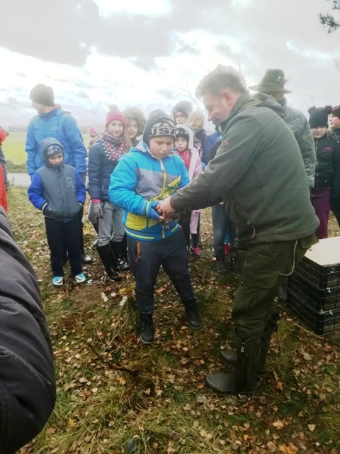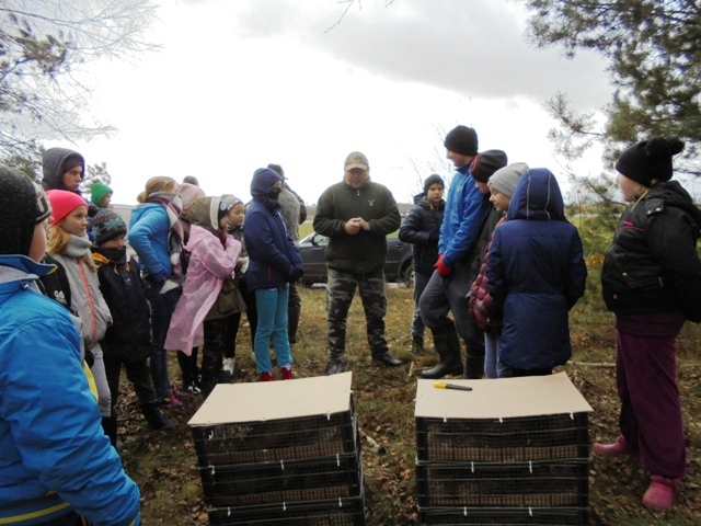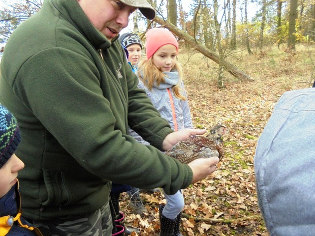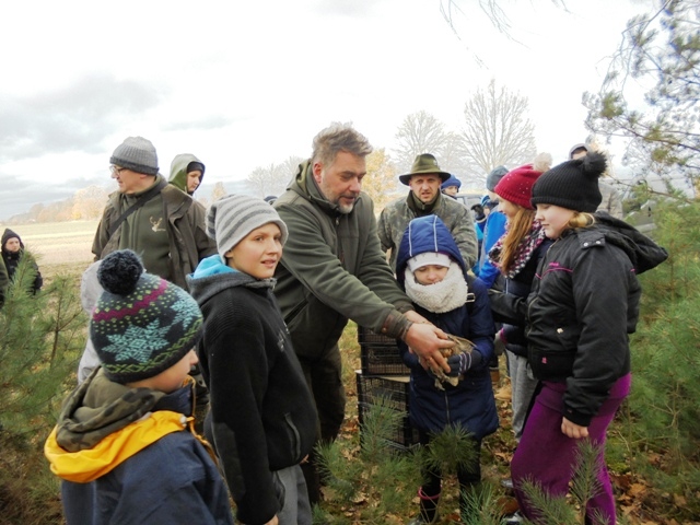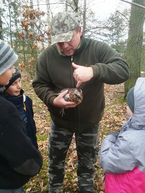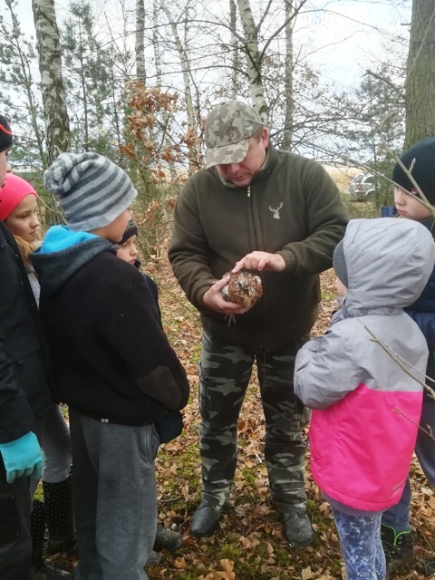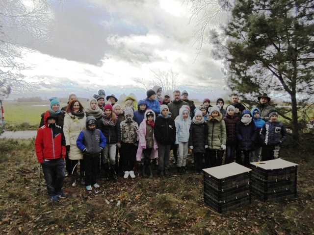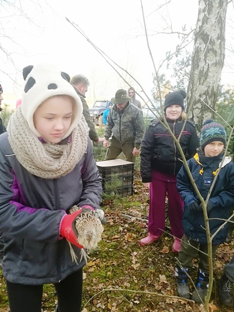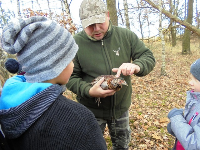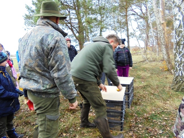 W ramach programu „Ożywić pola” w dniu 11 listopada uczniowie naszej szkoły wzięli udział w akcji wypuszczania bażantów, zorganizowanej przez Koło Łowieckie „Dzik” z Trzcianki oraz p. A. Nowak i M. Kasperek. Celem akcji było zwiększenie populacji tego ptaka w środowisku. Poprawnie prowadzona gospodarka bażanta w łowisku opiera się na zasilaniu zakupionymi ptakami wypuszczanymi jesienią, czy z początkiem zimy. Ptaki w ilości 100 sztuk osobiście dowiózł na pole w okolicach Siedliska prezes koła pan Jarosław Czemko. Zanim zaczął się proces wypuszczania usłyszeliśmy z ust pana prezesa wiele ciekawych informacji na temat tych zwierząt, m.in. że jest to gatunek dużego ptaka z rodziny kurowatych wywodzący się z umiarkowanych obszarów Azji i występujący obecnie po skrajnie południowo – wschodnią Europę w 30 podgatunkach. Do Europy Środkowej sprowadzono go w średniowieczu z Chin. Gniazdo zakłada na ziemi, samica składa 8-14 jaj, które wysiaduje sama przez 22-25 dni. Uczniowie byli bardzo podekscytowani, gdyż każdy osobiście miał okazję wypuścić ptaka na wolność. Niektórzy mieli trochę strachu w oczach, ale pod czujnym okiem myśliwych - p. Tomasza Frąckowiaka, p. Jana Łopato, p. Piotra Bilińskiego, p. Wojciecha Szafrańskiego i p. Andrzeja Piwońskiego poszło im całkiem dobrze. Miło było patrzeć jak ptaki wzlatują w powietrze, siadają na drzewach, a inne gromadzą się na polach i leśnych dróżkach… Pytanie, które często padało:„ czy bażanty dadzą radę przetrwać w naturalnym środowisku…?” Jak zapewnili panowie część na pewno przetrwa.