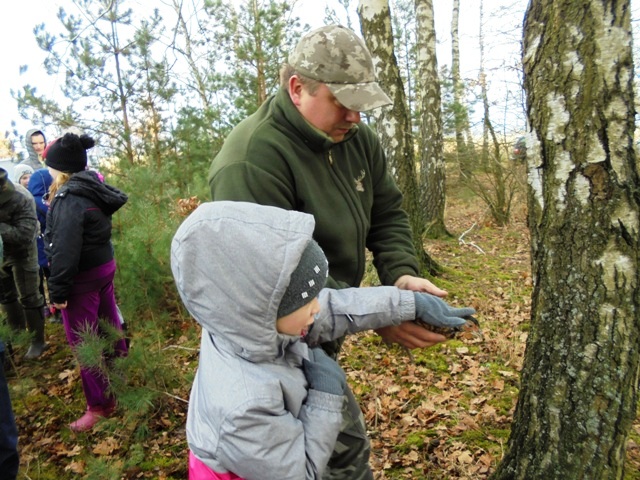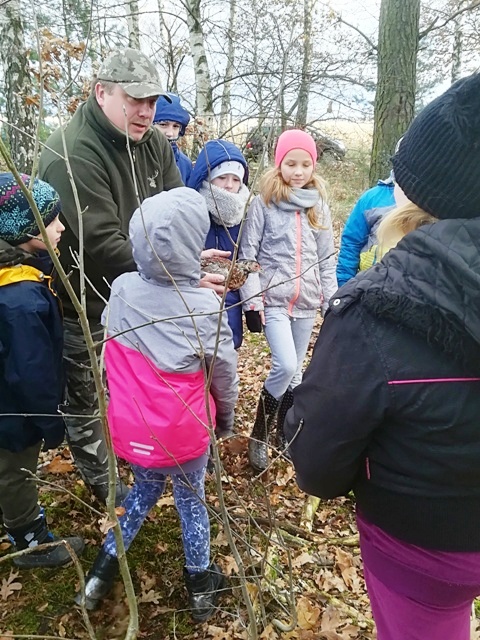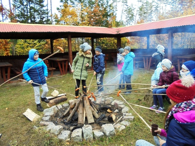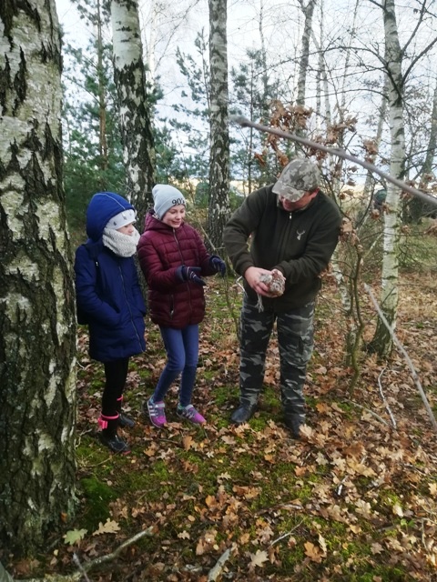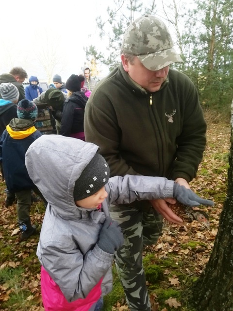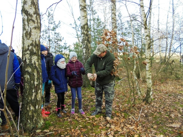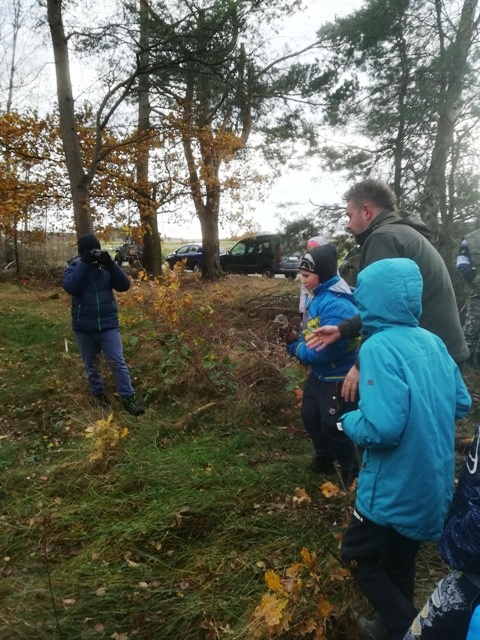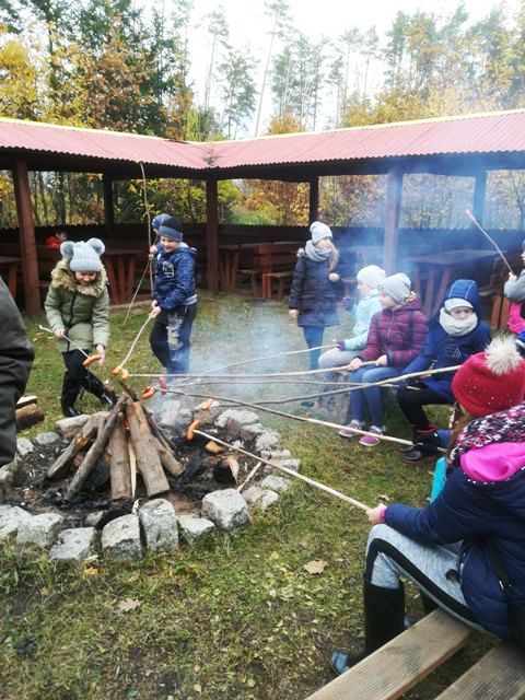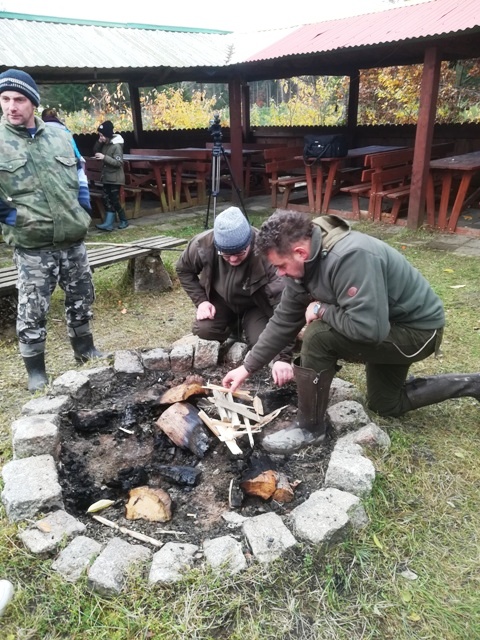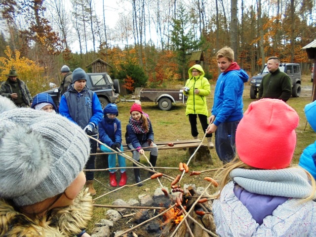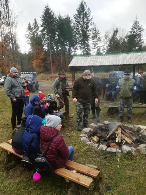 Pogoda tego dnia była bardzo wietrzna i chłodna, ale mieliśmy okazję się ogrzać. Zaproszeni na ognisko pojechaliśmy piec kiełbaski na Hubertówkę. Miło było gawędzić popijając gorącą herbatę. Rozstaliśmy się w miłej i serdecznej atmosferze. Dziękujemy Kołu Łowieckiemu „Dzik” i do następnego spotkania.