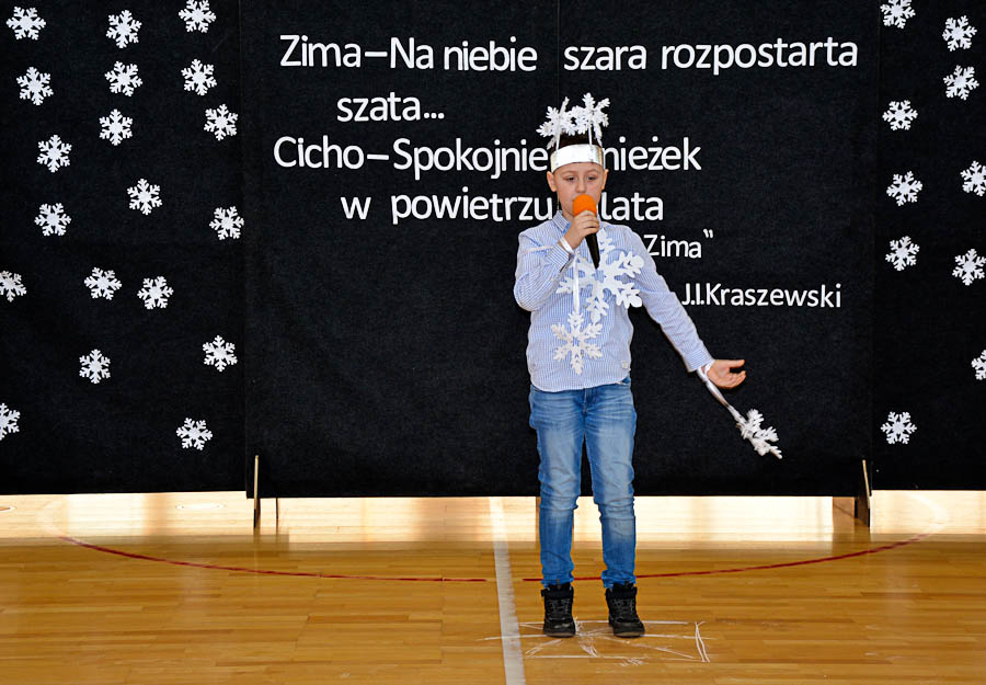 Miał on formę prezentacji utworu poetyckiego o tematyce zimowej. Przebiegał w dwóch etapach. Pierwszy etap polegał na wyłonieniu w eliminacjach klasowych 3 uczniów, którzy reprezentowali klasę na etapie szkolnym. W konkursie wzięło udział 29 uczniów.