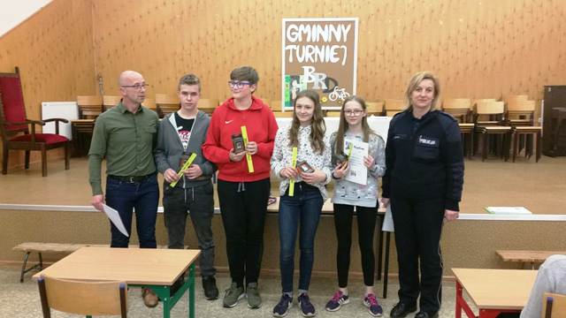 11 kwietnia 2018r. w Szkole Podstawowej nr 2 w Trzciance odbyły się gminne eliminacje do Powiatowego Turnieju Bezpieczeństwa Ruchu Drogowego. W tym roku rywalizowało ze sobą 6 drużyn ze szkół podstawowych z terenu miasta i gminy Trzcianka (SP nr 2 w Trzciance, SP nr 3 w Trzciance, Katolicka Szkoła Podstawowa, SP Rychlik, SP Łomnica i SP Siedlisko). Naszą szkołę reprezentowała czteroosobowa drużyna z klasy VII w składzie: Liliana Szymańska, Maja Kilian, Wojtek Chełmiński i Krystian Frejus. Uczniowie musieli zmierzyć się w teście wiedzowym i na rowerowym torze przeszkód. Po zsumowaniu wszystkich punktów zajęliśmy I miejsce, tym samym przechodząc do kolejnego etapu, który odbędzie się w Czarnkowie. II miejsce zajęła drużyna z SP 2 w Trzciance, która również przeszła do kolejnego etapu, III miejsce zajęli uczniowie z SP w Łomnicy. Gratulujemy zwycięzcom.