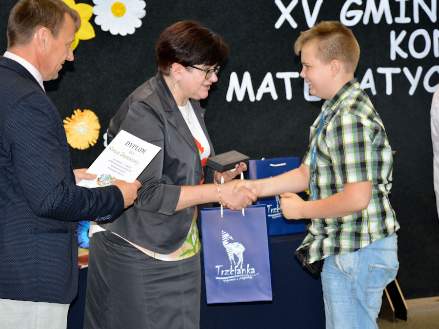 XV edycję konkursu matematycznego objął honorowym patronatem pan Krzysztof Czarnecki Burmistrz Trzcianki. Uczestnicy konkursu walczyli o tytuł najlepszego matematyka w swoich kategoriach klasowych oraz o nagrodę główną: