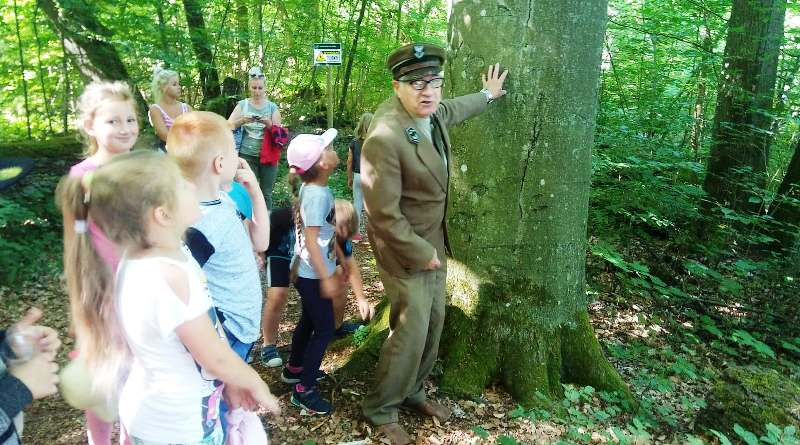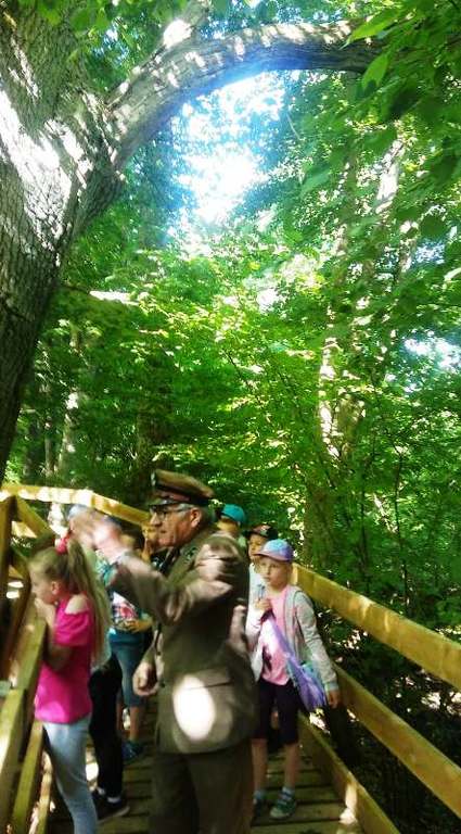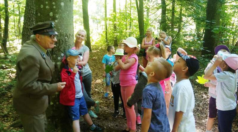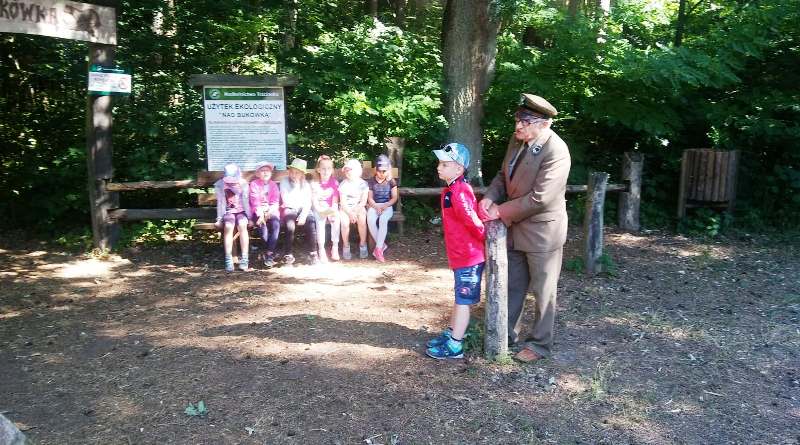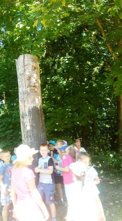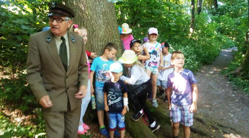 Las to nie tylko wilk i gajowy ze strzelbą, jak w odgrywanej niedawno przez pierwszaków bajce ,,Czerwony Kapturek. Co to jest las, jakie zwierzęta i rośliny w nim żyją? Tego uczniowie klasy I dowiedzieli się, spędzając dzień poza murami szkoły na przepięknej widokowej ścieżce przyrodniczej ,,Nad Bukówką”. Naszym przewodnikiem i źródłem bezcennej wiedzy był dziadek jednego z naszych kolegów p. Wardak. Pan leśniczy barwnie opowiadał nam o tajemnicach lasu: najstarszym dębie Wojtku, liczącym około 400lat, o Sylwanie- duchu lasu oraz o drzewach, które z uwagi na kształt jaki przybrały nazwał Trzema Muszkieterami. Dzieci dowiedziały się także jakie zwierzęta mogą spotkać w lesie , że spotkanie wilka to już nie bajka, bo te zwierzęta również są widywane w okolicznych lasach. Na dzieci czekała jeszcze jedna atrakcja, przygotowana przez rodziców: wizyta w leśniczówce, smaczny poczęstunek oraz strzelanie z wiatrówki.Tę moc wrażeń, które na długo pozostaną w pamięci zawdzięczamy panu leśniczemu i rodzicom, którzy pomogli w zorganizowaniu wszystkich atrakcji.