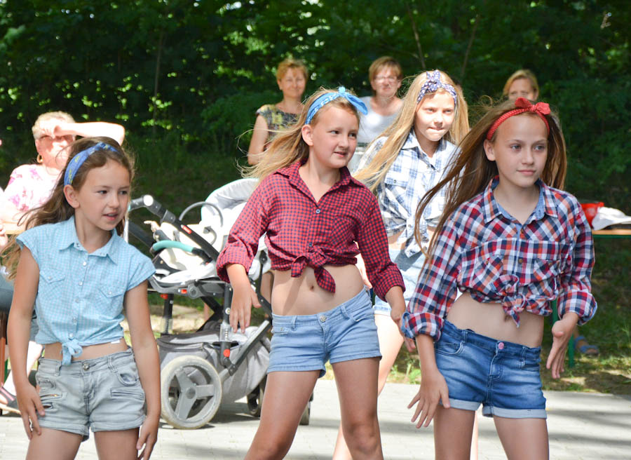 Wystąpił także, ze swoim programem muzycznym p. T. Zieliński , co spodobało się starszej publiczności. Uczestnicy festynu chętnie wzięli udział w rozgrywkach sportowych: grze w piłkę nożną oraz w wyścigach rzędów. Dodatkową atrakcją festynu były czekoladowe fontanny, które cieszyły się wielkim zainteresowaniem łasuchów oraz dmuchany dziecięcy zamek, z którego z upodobaniem korzystali najmłodsi. Zawdzięczamy je sponsorowi – Kołu Łowieckiemu „Dzik”. Starsi i młodsi przez cały czas mogli posilić się grillowaną kiełbaską ,którą sponsorowali nam p. D. i P. Kosowscy, ciastem, a także, dzięki uprzejmości MGOPS – zupą pomidorową i pysznymi naleśnikami z serem.