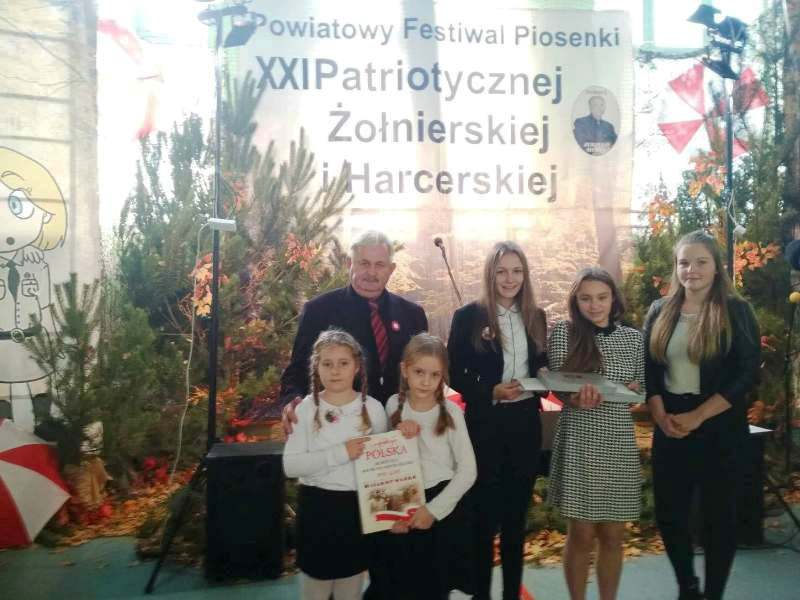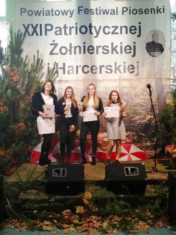 Uczennice naszej szkoły odniosły KOLEJNY SUKCES. 15.11.2018r. wywalczyły ll miejsce na XXI Powiatowym Festiwalu Piosenki Patriotycznej, Żołnierskiej i Patriotycznej w Kuźnicy Czarnkowskiej. Maja Kilian, Agata Gacka, Kamila Wawrzyniak z panią Joanną Cichy otrzymały specjalne wyróżnienie za ciekawą aranżację piosenki ,,Dziś idę walczyć mamo". Gratulujemy i życzymy kolejnych sukcesów!!!