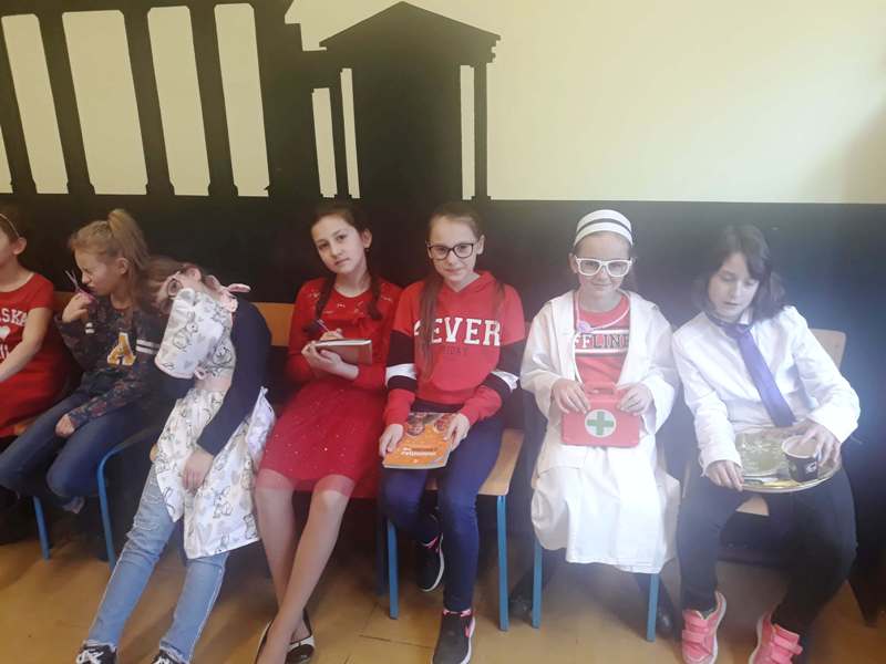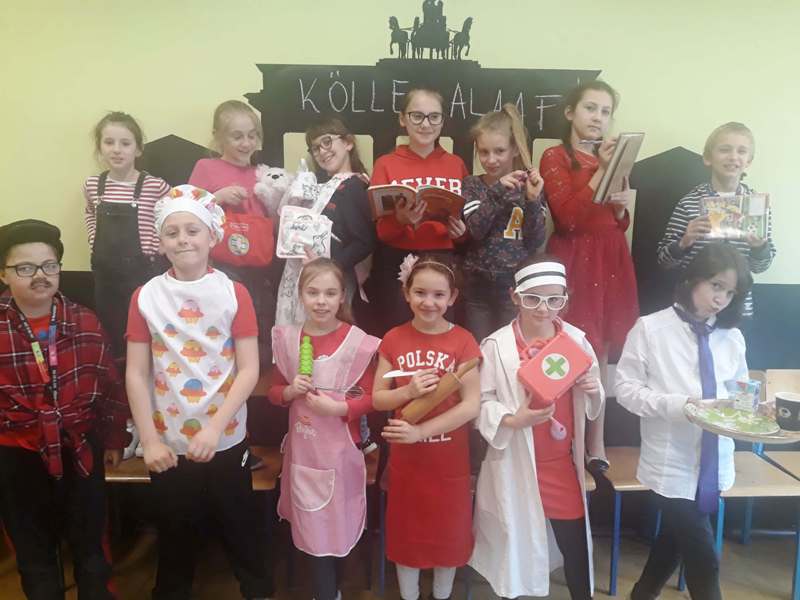 Uczniowie klasy IVa na chwilę przenieśli się do świata wymorzonego zawodu. Przy okazji poznania nazw zawodów po niemiecku, w cielili się w wymarzony przez siebie zawód. Tego dnia lekcja przebiegała bardzo spontanicznie, przeplatana różnymi formami zabaw i gier ruchowych, mających na celu jak najlepsze opanowanie nazw w języku niemieckim.
