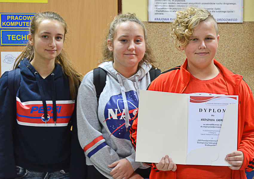 W czwartek 17 października w Starostwie Powiatowym w Czarnkowie uczniowie naszej szkoły tj. Gabriela Hutnik, Dagmara Trafas i Krzysztof Chełmiński wzięli udział w XII Ponadpowiatowej Olimpiadzie Ekologicznej Subregionu Północnej Wielkopolski. Wśród ośmiu przedstawicieli naszego powiatu, którzy zakwalifikowali się do ścisłego finału olimpiady znalazł się nasz uczeń: Krzysztof Chełmiński, który zdobył wyróżnienie. Finał XII Ponadpowiatowej Olimpiady Ekologicznej Subregionu Północnej Wielkopolski odbędzie się 7 listopada w Pile. Gratulujemy i trzymamy kciuki! Uczniom dziękujemy za godne reprezentowanie naszej szkoły.