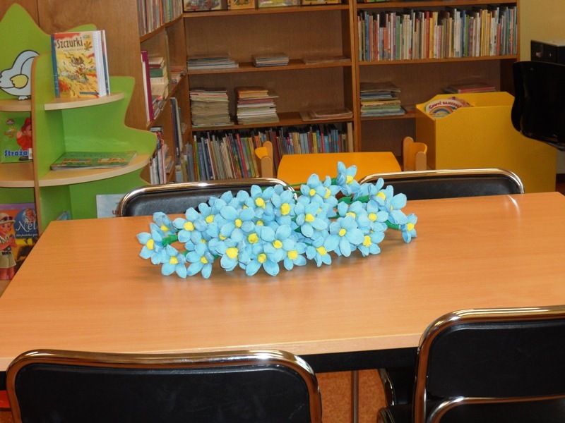 Na pamiątkę tego wydarzenia otrzymały niezapominajki wykonane przez panią bibliotekarkę.