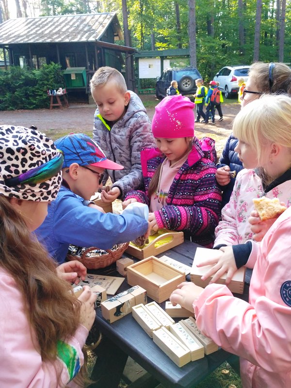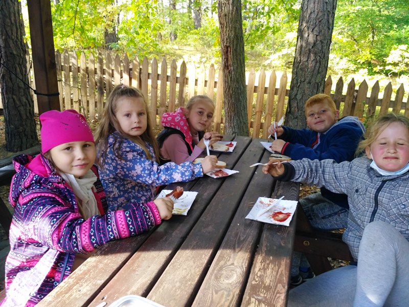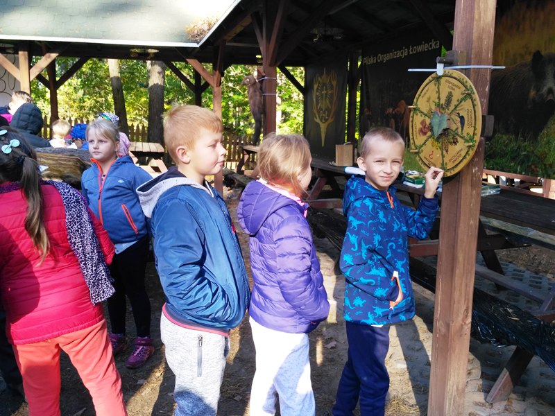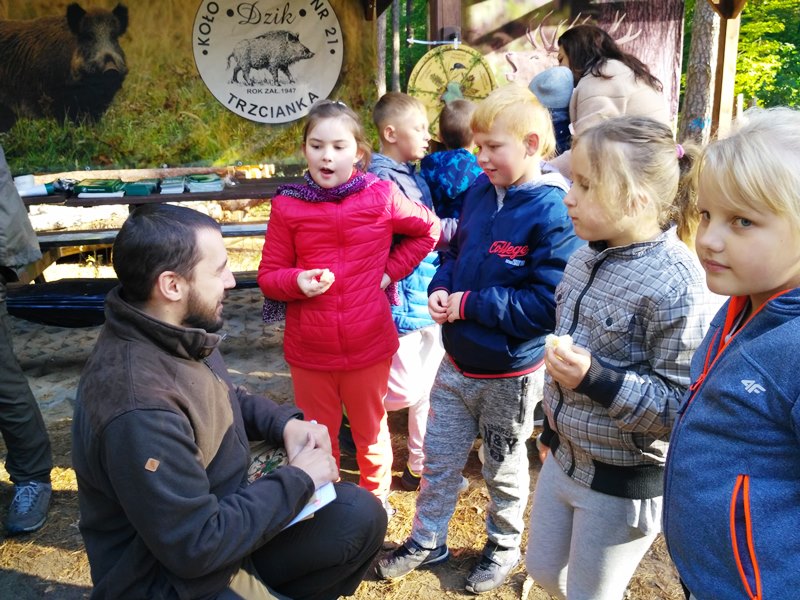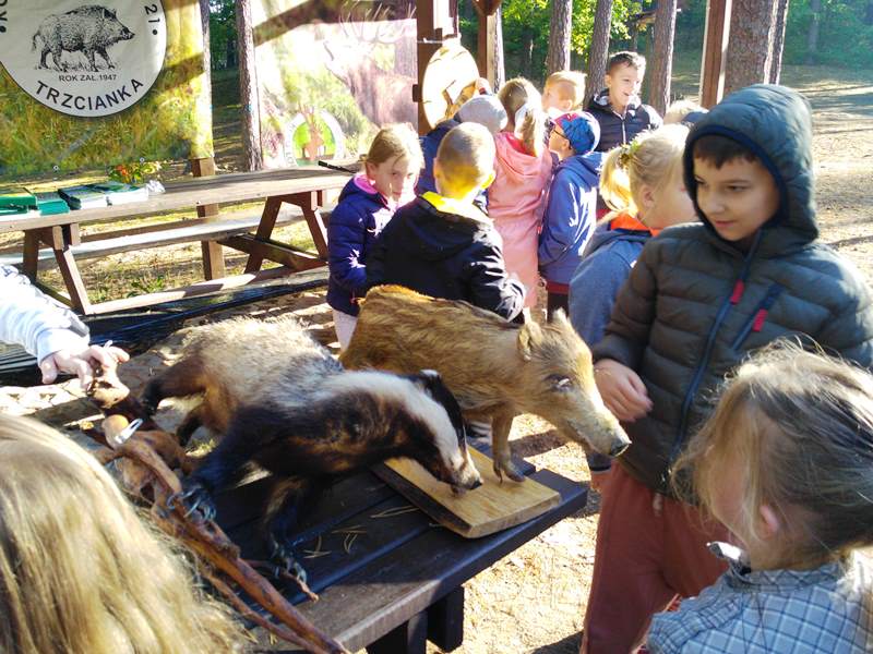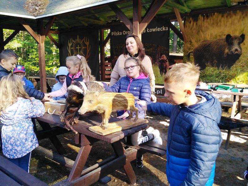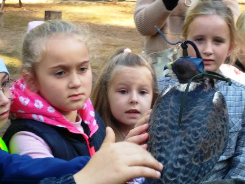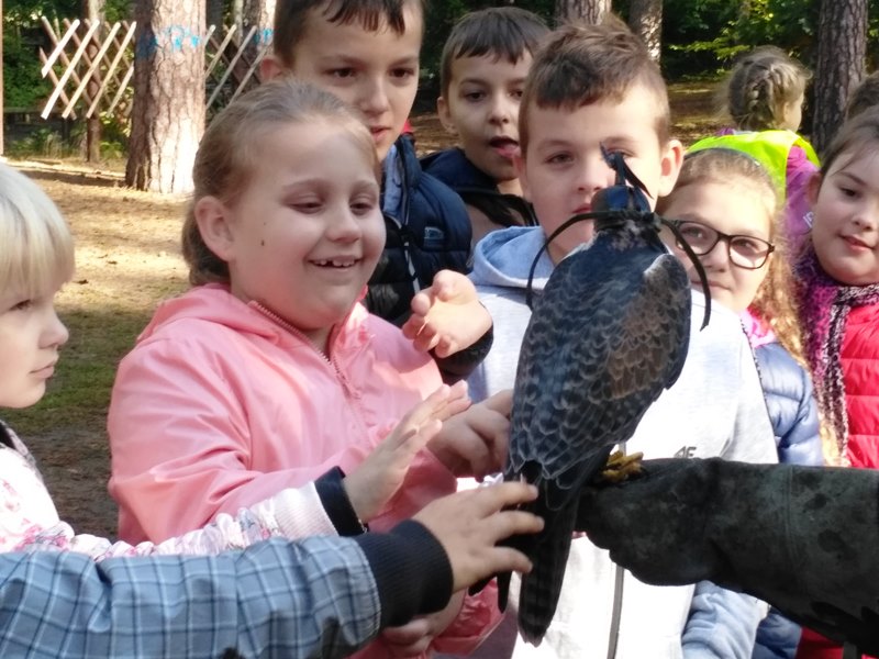 1 października uczniowie klas II i III zostali zaproszeni na zajęcia edukacyjne, na Strzelnicę Sportowo-Myśliwską do Trzcianki. Organizatorem zajęć było Koło Myśliwskie "Dzik" oraz Nadleśnictwo Trzcianka. Dzieci rozwiązywały rebusy, grały w gry o tematyce przyrodniczej, rozpoznawały tropy zwierząt leśnych, układały puzzle, oglądały eksponaty. Podziwiały tresurę psa myśliwskiego. Największą atrakcją tego spotkania były ptaki: sokół, sowa oraz jastrzębica, o których usłyszeliśmy mnóstwo ciekawych informacji. Spotkanie zakończyło się pieczeniem kiełbasek przy ognisku. Organizatorom serdecznie dziękujemy za zaproszenie i wspaniale spędzony czas.
