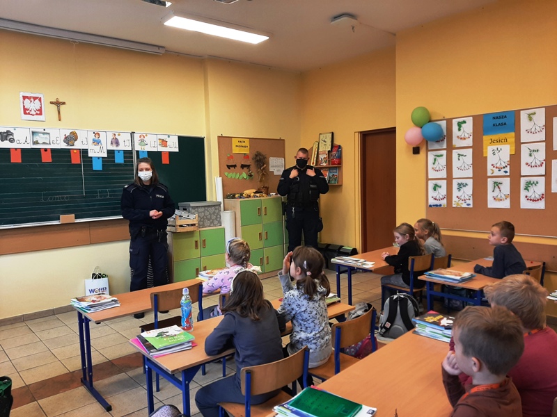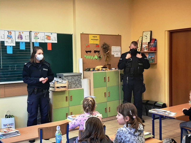 SPOTKANIE Z POLICJANTAMI W KLASIE PIERWSZEJ.