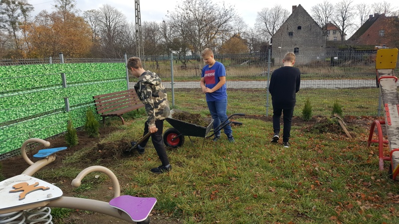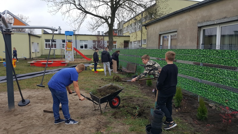 Uczniowie klasy 8 Szkoły Podstawowej im. Miłośników Przyrody w Siedlisku w ramach wolontariatu włączyli się w akcje sadzenia drzew i krzewów przez Gminne Przedszkole w Siedlisku. Prace polegały na przekopywaniu ziemi, wywożeniu starej trawy, sadzeniu drzew i krzewów. Uczniowie pod nadzorem Pana Grzegorza Hrynkiewicza wykonywali prace z zaangażowaniem i starannością. Całej akcji towarzyszyła przyjazna atmosfera.