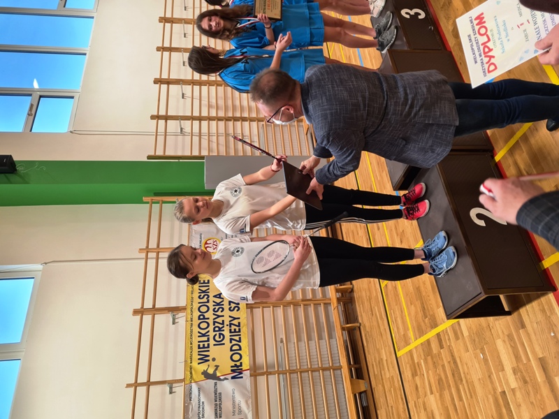 Tak tak tak. Stało się. Gabi Burda i Kinga Oskaldowicz wicemistrzyniami Wielkopolski w badmintonie dziewcząt. W dniu 13.12.2021 roku w Rojowie gmina Ostrzeszów zawodniczki UKS Gwiazda Siedlisko Gabrysia Burda i Kinga Oskaldowicz wywalczyły II miejsce w drużynowych Mistrzostwach Wielkopolski w badmintonie dziewcząt ulegając w finale drużynie z Kleszczewa. Droga do finału nie była łatwa. Najpierw dziewczęta przystąpiły do rozgrywek w grupie B, w której pokonały drużyny z Gniezna i Ostrzeszowa, a uległy drużynie SP Kleszczewo. Następnie w półfinale pokonały zawodniczki z SP 82 Poznań ( zwycięzców grupy A) Finał to znów starcie z dziewczętami z Kleszczewa w którym Gabi i Kinga przegrały uzyskując ostatecznie tytuł WICEMISTRZA WIELKOPOLSKI. Cieszymy się bardzo z tego ogromnego sukcesu i życzymy powodzenia na następnych turniejach.