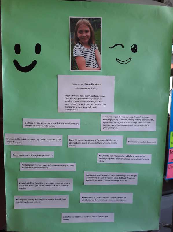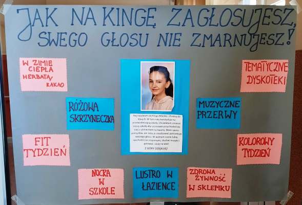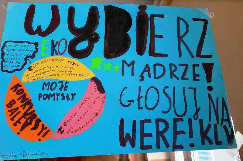 W ramach kampanii wyborczej uczniowie naszej szkoły kandydujący w wyborach do SU przygotowali plakaty wyborcze, na których przedstawiali swoje pomysły na to jak zmienić szkołę na bardziej przyjazną uczniom. Wybrana została również komisja wyborcza, która czuwała nad prawidłowym przebiegiem kampanii. Członkowie komisji zbierali podpisy na listach w celu poparcia dla kandydatów do SU. Kandydaci natomiast promowali się na różne sposoby rozdając ulotki reklamujące swoją osobę oraz cukierki.