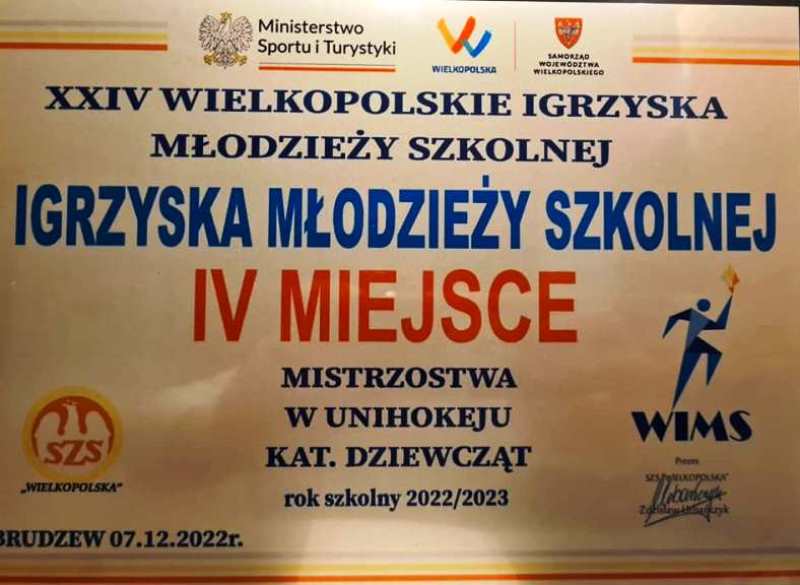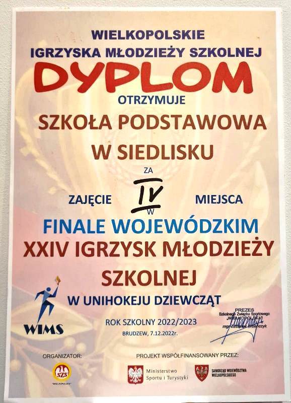 W dniu 7 grudnia 2022 roku w Hali Widowiskowo - Sportowej w Brudzewie koło Turku zawodniczki UKS-u Gwiazda Siedlisko przystąpiły do rozgrywek Finału Mistrzostw Wielkopolski w unihokeju. Jest to ostatni szczebel rozgrywek w ramach Igrzysk Młodzieży SZS Wielkopolska. Do tegorocznego finału awans wywalczyły cztery drużyny: UKS Kasztelania Burdzew, UKS Kopla Paczkowo, UKS Salezjanie Poznań i UKS Gwiazda Siedlisko. Finał stał na bardzo wysokim poziomie gdyż wszystkie drużyny poza naszą to uczestnicy wielkopolskiej ligi unihokeja. W wyniku klasyfikacji generalnej UKS Gwiazda uplasował się na czwartym miejscu rozgrywek. Wśród nagród indywidualnych najlepszą zawodniczką turnieju została nasza atakująca Maria Sas.