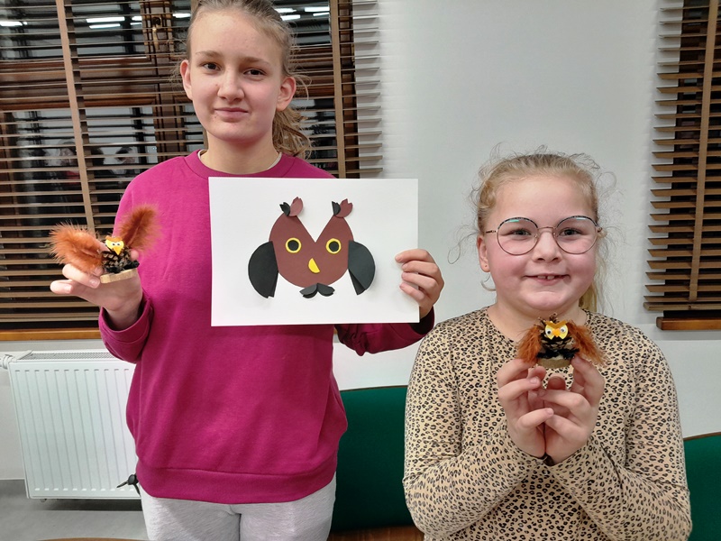 Uczniowie, którzy wyróżnili się w zbiórce karmy dla leśnych zwierząt, uczestniczyli w warsztatach pt.: "Co w lesie huczy?". Zajęcia zorganizowane zostały przez Nadleśnictwo Trzcianka, Nadnoteckie Koło PTOP "Salamandra" oraz TPL. Dzieci obejrzały ciekawą prezentację dotyczącą sów żyjących na naszym terenie, wykonały piękne prace plastyczne, miały również okazję poznać sowę śnieżną o imieniu Hania. Na terenie Szkółki Gospodarczej w Niekursku brały udział w "nocnym" poszukiwaniu sów. A po tym leśnym spacerze mogły ogrzać się gorącą herbatą i upiec kiełbaski przy ognisku. I chociaż temperatura powietrza w lesie była ujemna, wszystkim dopisywał dobry humor.
