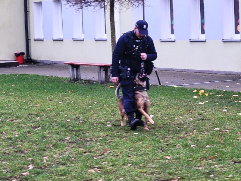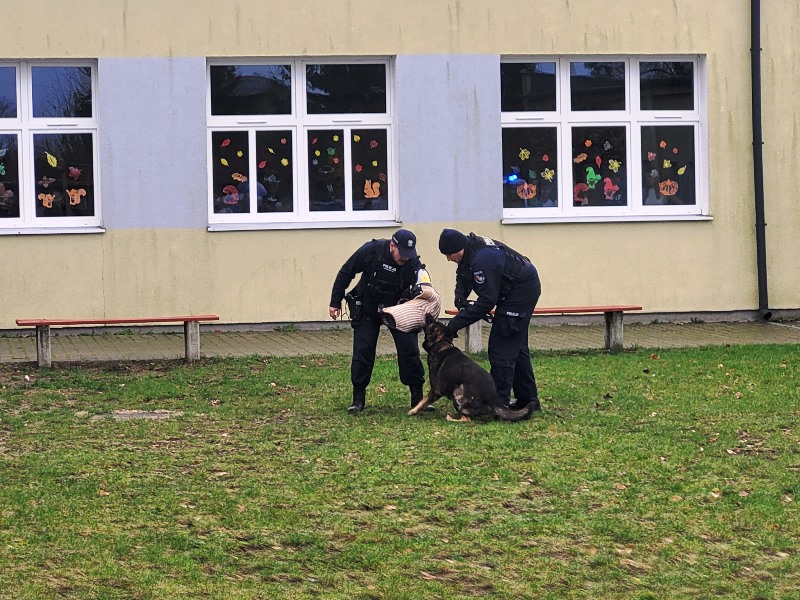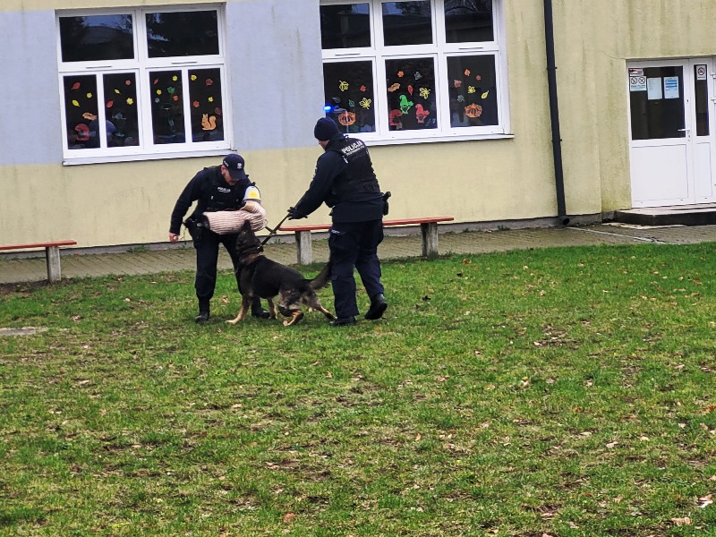 Naszą szkołę odwiedzili niezwykli goście sierż. sztab. Agata Derezińska, asp. Michał Woźnicki z Portosem oraz st. post. Szymon Gramse z Ciną. Policjanci zaprezentowali uczniom pracę swoją oraz ich czteronożnych partnerów. Zademonstrowali umiejętności psów podczas akcji poszukiwawczych oraz patroli.
