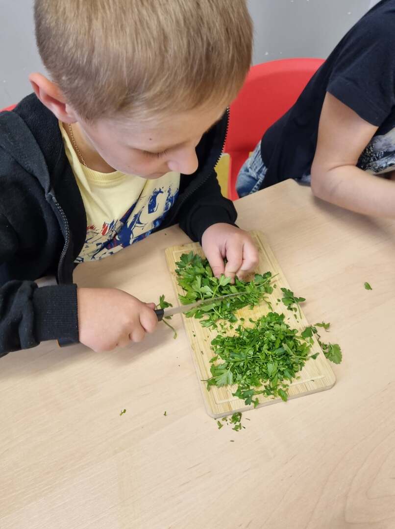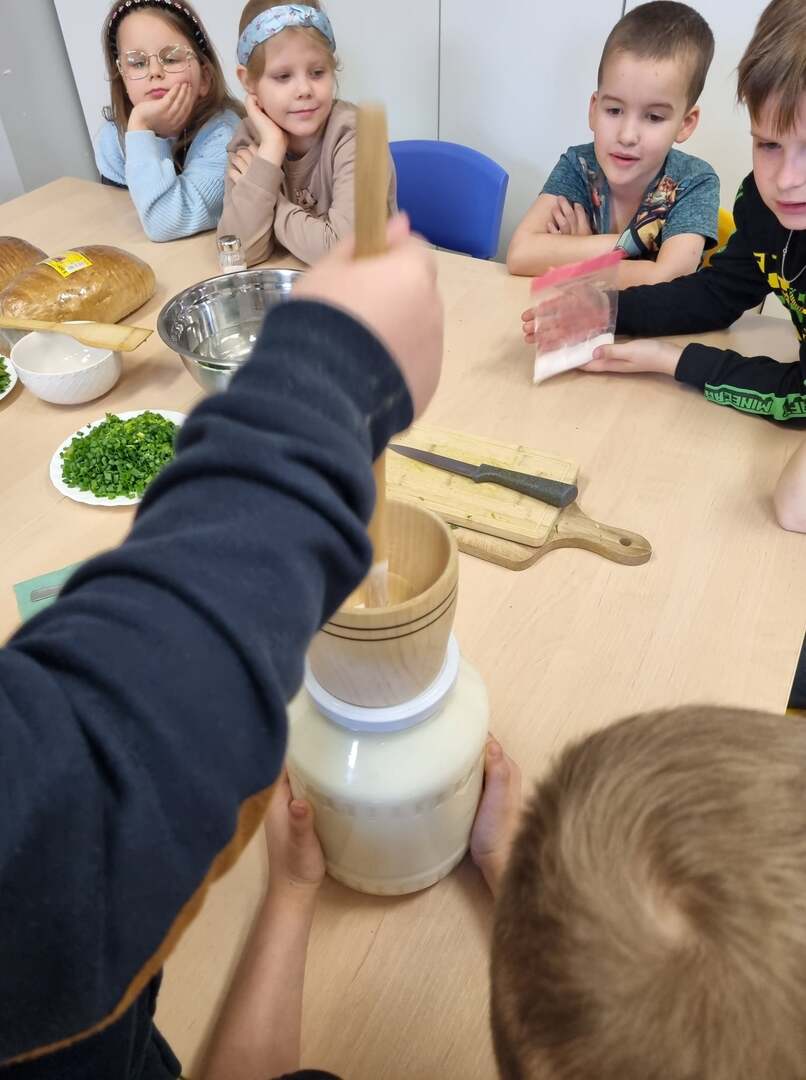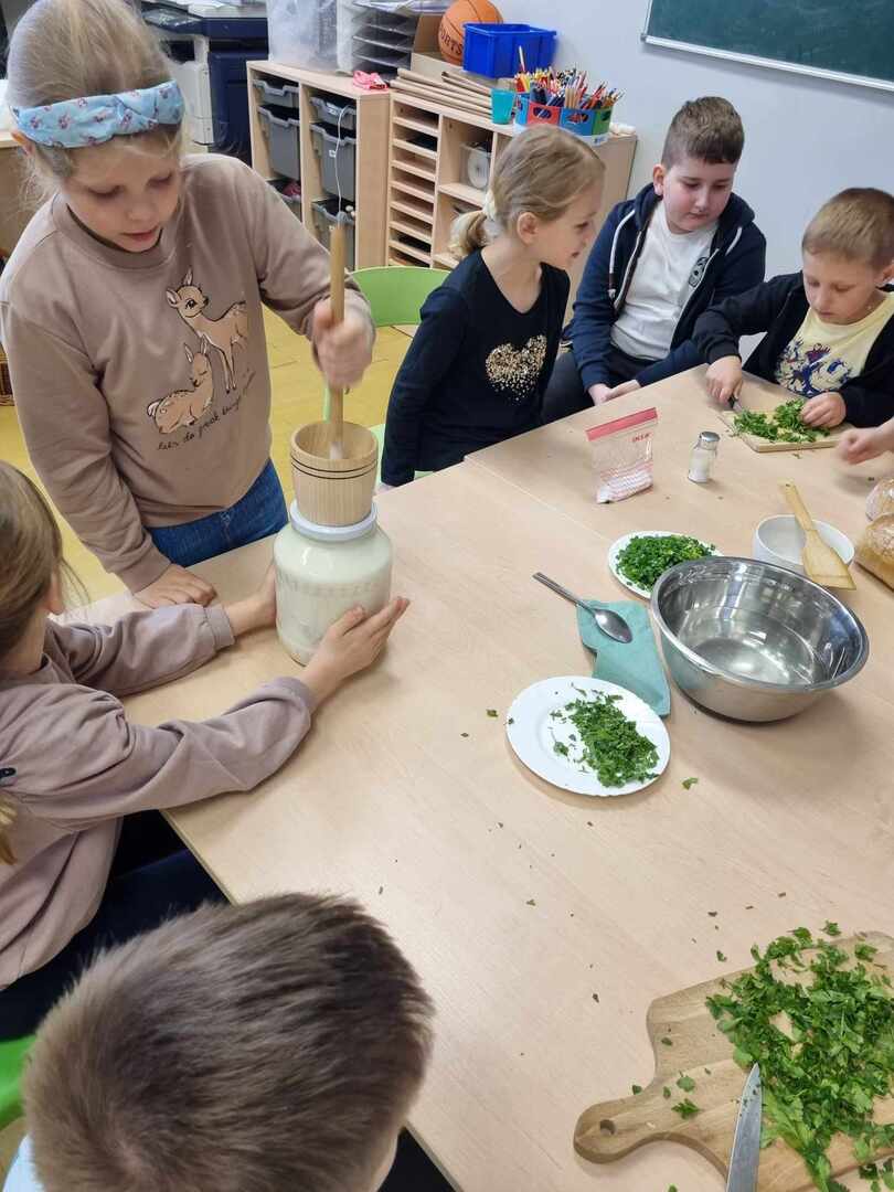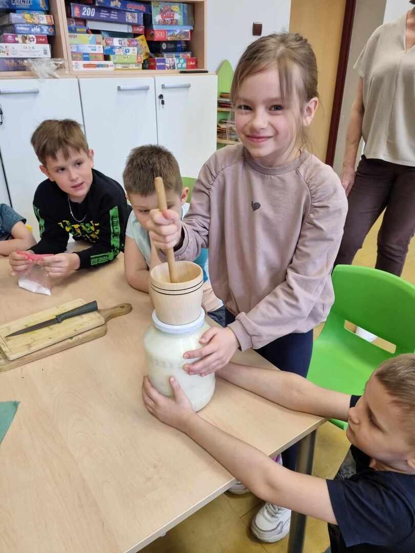 W ramach warsztatów "Nie marnujemy tylko wykorzystujemy", uczniowie klasy 1 zrobili pyszne masło.