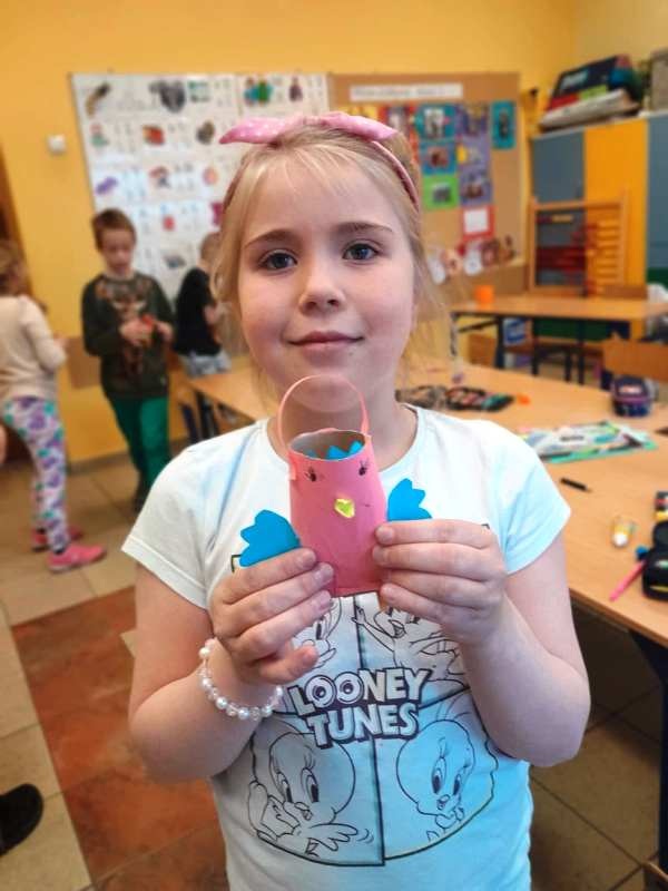 Pierwszaki w zgodzie z eko trendami wykonały kurczątka, wykorzystując rolki po papierze toaletowym. Wykorzystamy je jako wielkanocne ozdoby.