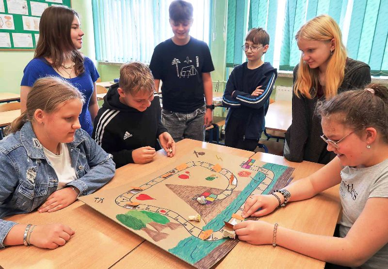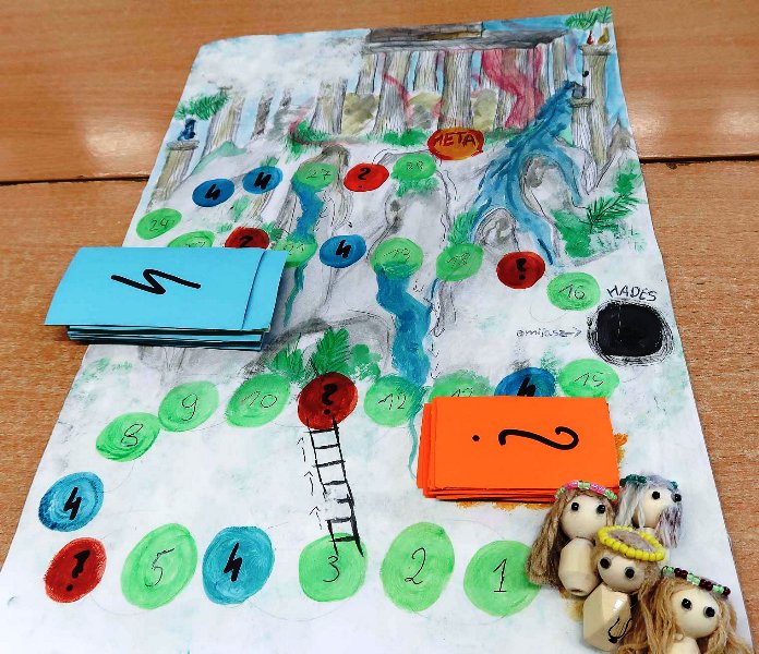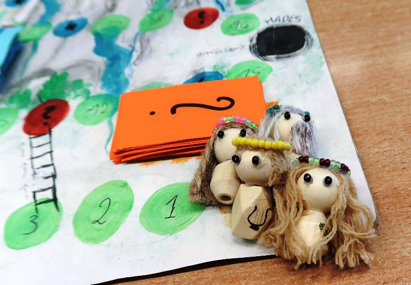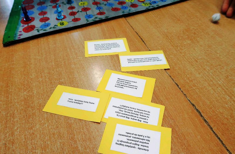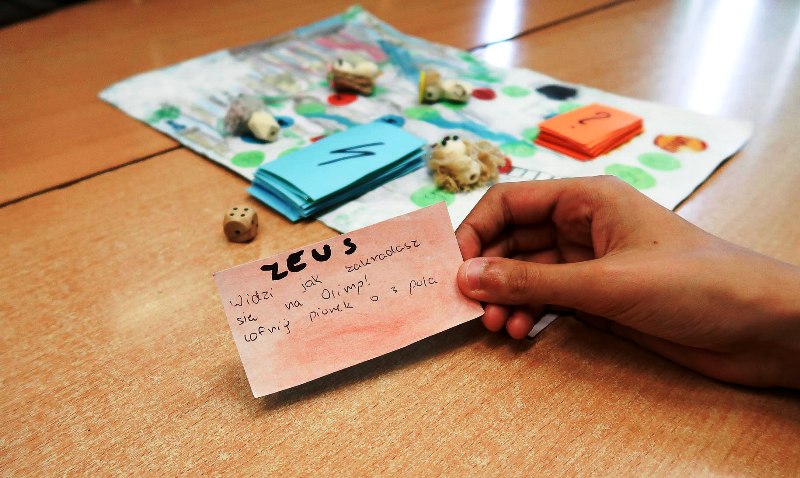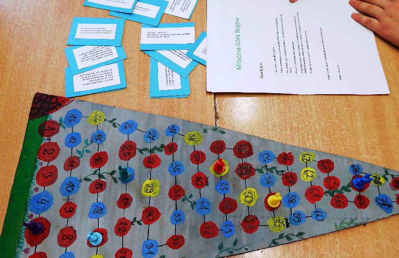 Szóstoklasiści pracowali przez dwa miesiące w czterech grupach. Własnoręcznie wykonali gry planszowe z wykorzystaniem kart mitologicznych, zawierających pytania, zagadki, zadania z zakresu mitologii greckiej.
