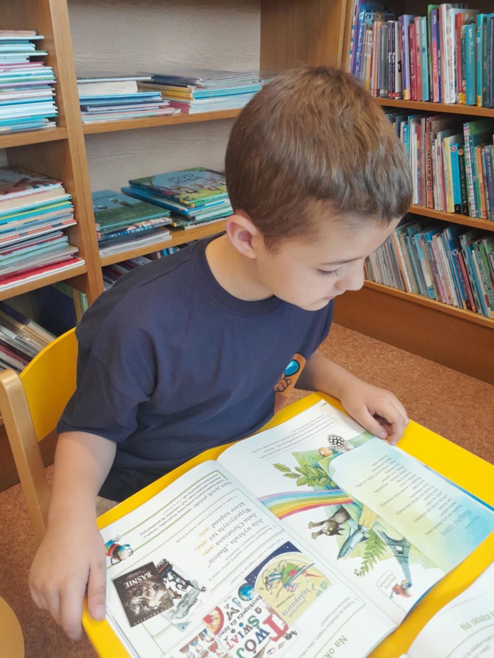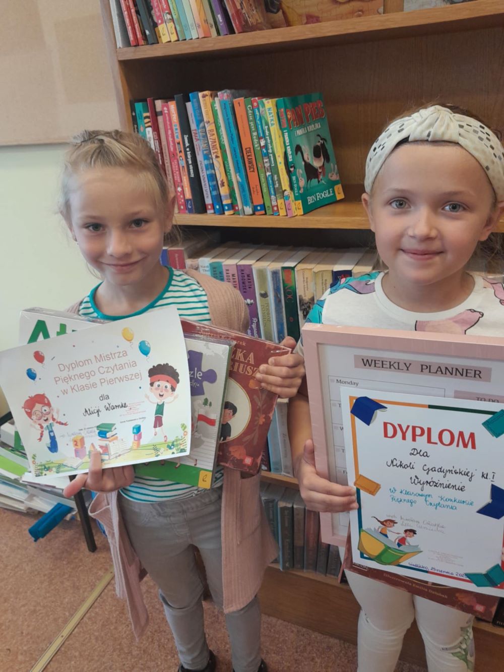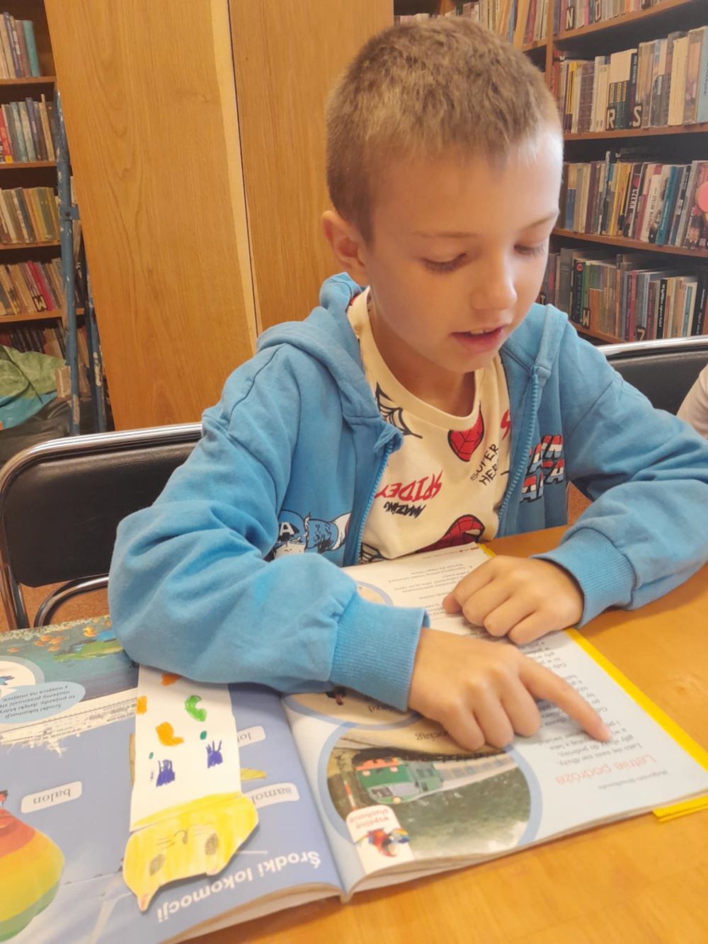 Spotkanie w bibliotece nie mogło się odbyć bez głośnego czytania. Pierwszym etapem był Konkurs Pięknego Czytania, w wyniku którego wyróżniona została Nikola Gadyńska, a Mistrzem Pięknego Czytania Alicja Warnke. Pani Liliana - bibliotekarka zachęciła uczniów do korzystania z różnych publikacji dla dzieci, przytaczając np.: historię dotyczącą lodów, które były już znane ludzkości pięć tysięcy lat wcześniej w Chinach albo różnymi zagadkami. Potem było kolorowanie, rozwiązywanie rebusów i krzyżówek.