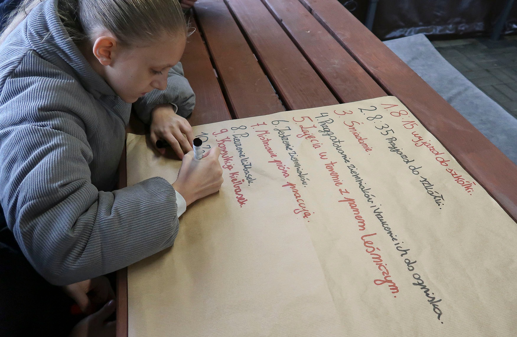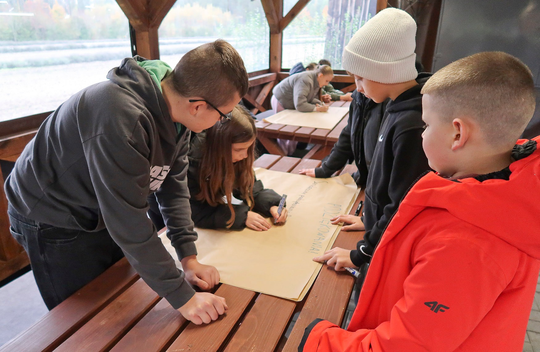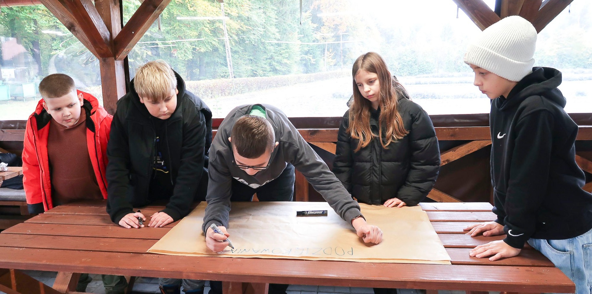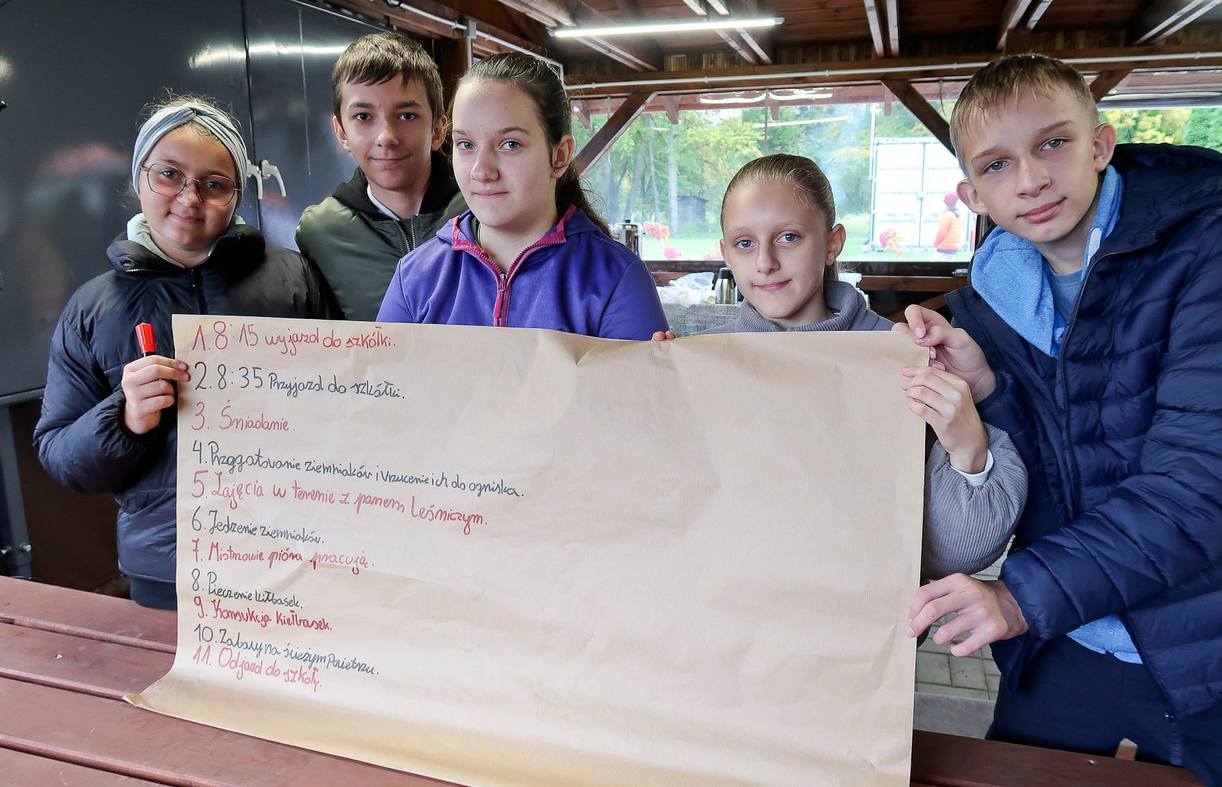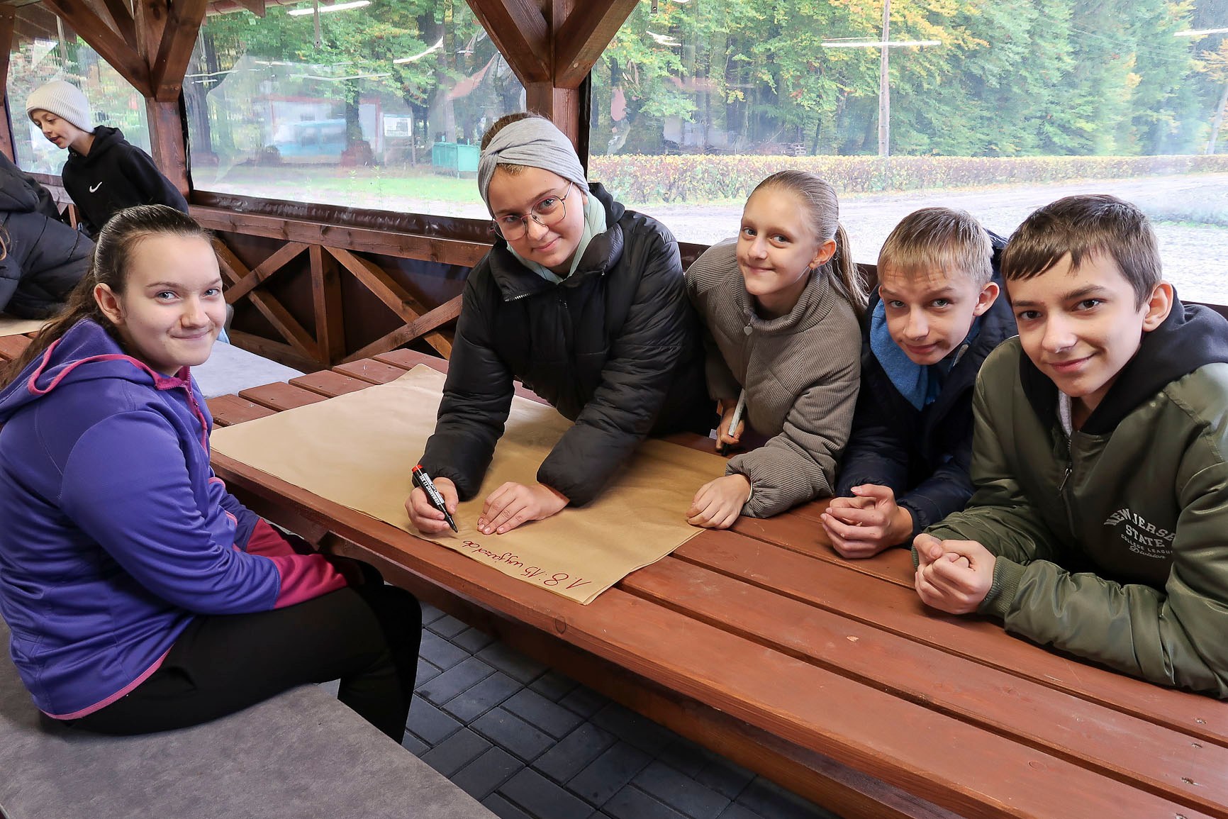 Pierwsza – Mistrzowie pióra – bardzo twórczo zabrała się do stworzenia planu wycieczki terenowej. W przemyślny sposób rozpisała wszystkie punkty programu. Następnie uczniowie zredagowali tekst podziękowań i zadbali o jego szatę graficzną. Kolejnym etapem będzie napisanie sprawozdania, już w murach szkolnych.