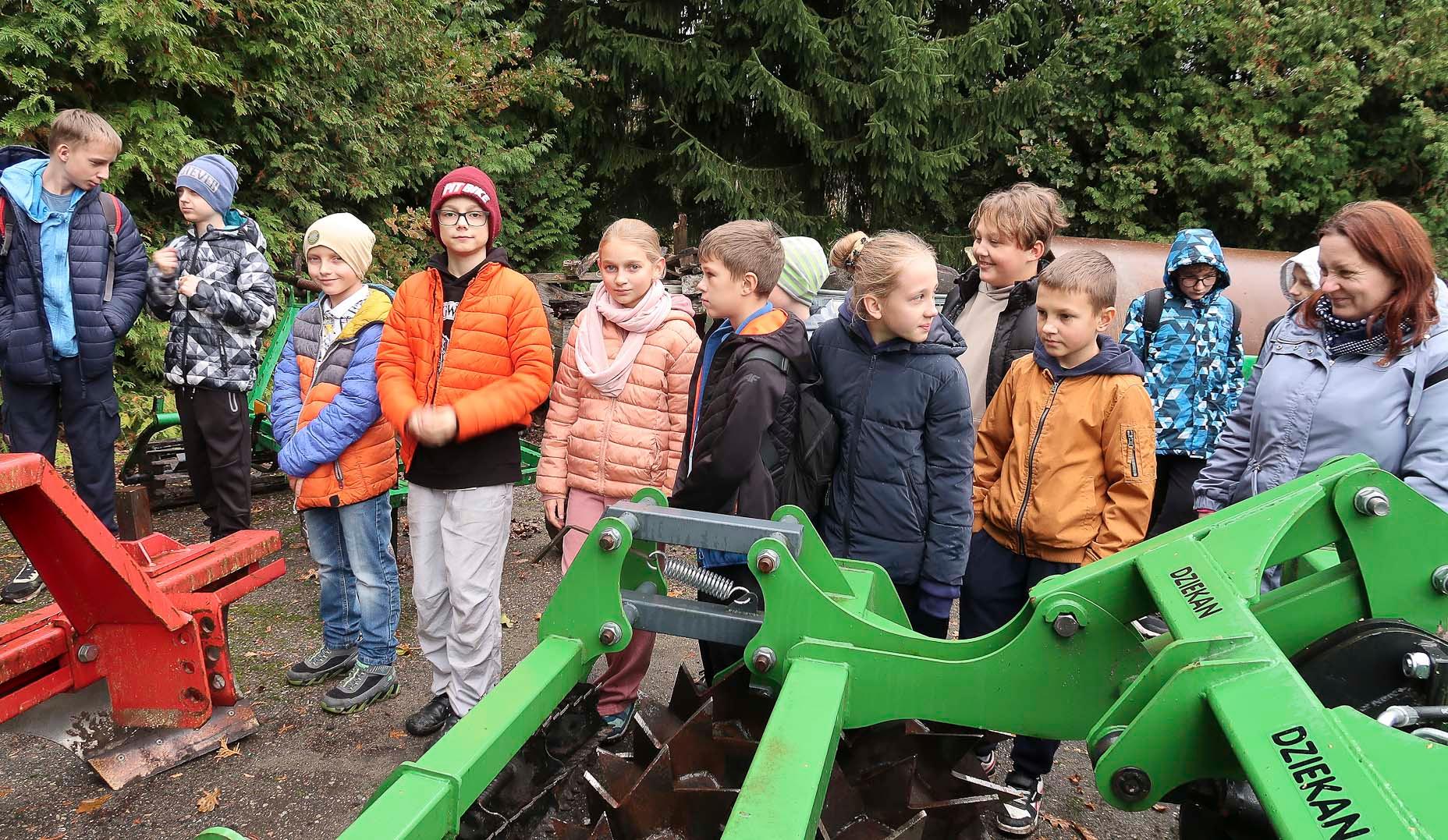 W drugiej części zajęć zapoznaliśmy się z budową i zasadami pracy różnych maszyn rolniczych. Mogliśmy też obserwować ich pracę w polu.