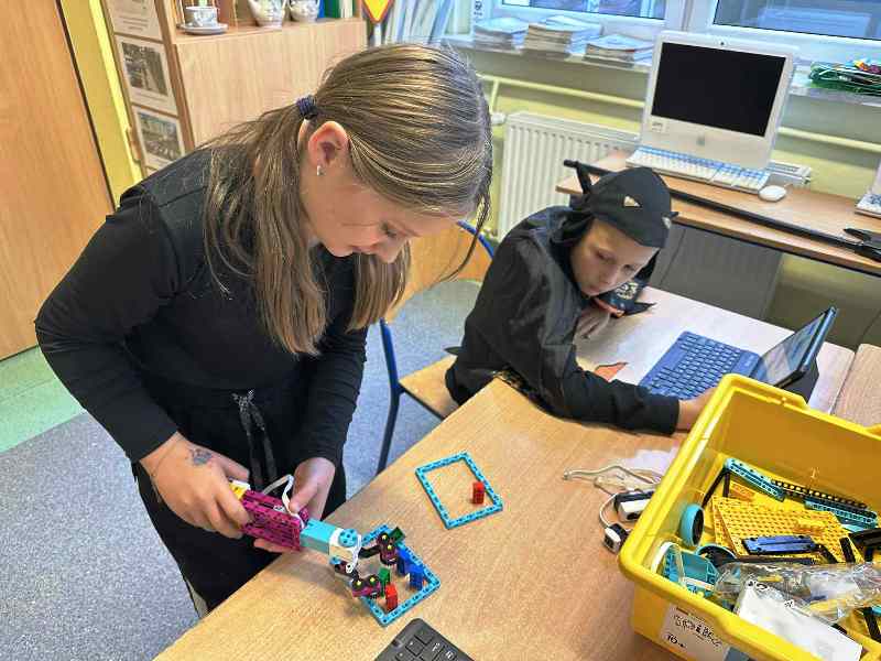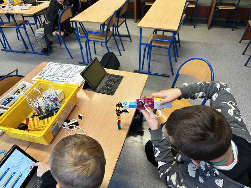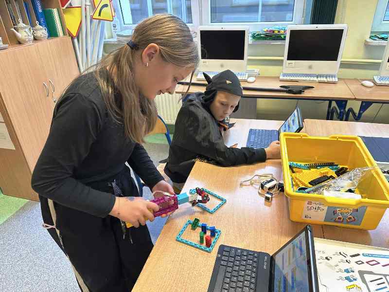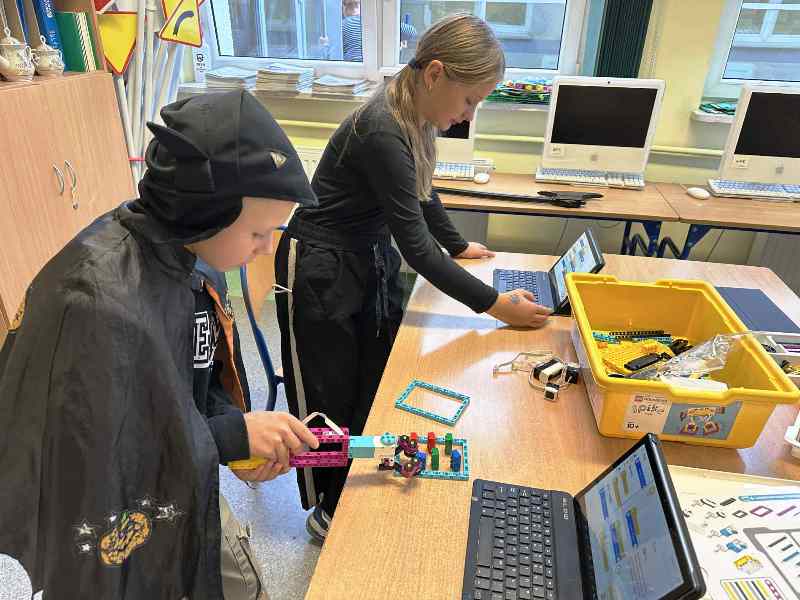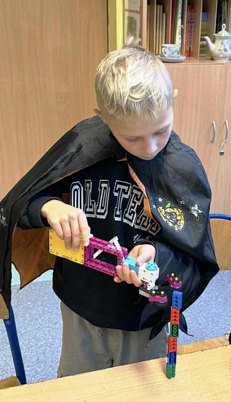 31 października uczniowie z klas 4-6 wzięli udział w zajęciach w ramach projektu Akcja Edukacja - "Z doświadczeniem na Ty". Pierwsze spotkanie było poświęcone zapoznaniu się z zestawem Lego Education Spike i ćwiczeniom technik pracy zespołowej poprzez cztery ciekawe wyzwania. Uczniowie pracowali w kilku zespołach, budowali konstrukcje na podstawie zamieszczonej instrukcji, wymienaili się spostrzeżeniami. Wykazli się umiejętnością skutecznej pracy z różnymi osobami, traktując je przy tym z szacunkiem. Kolejne zajęcia zaplanowane są na listopad i grudzień.